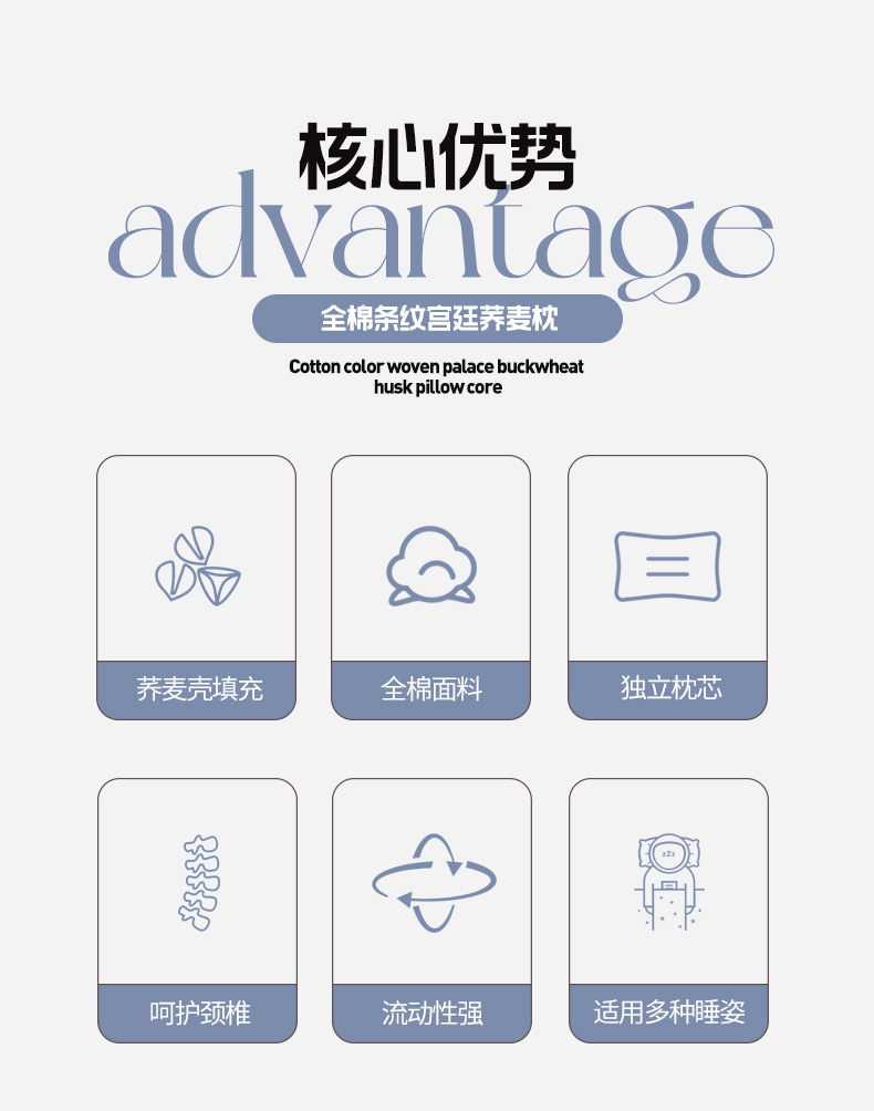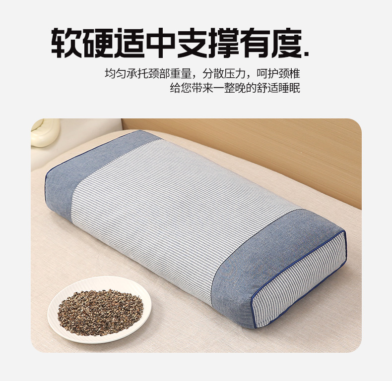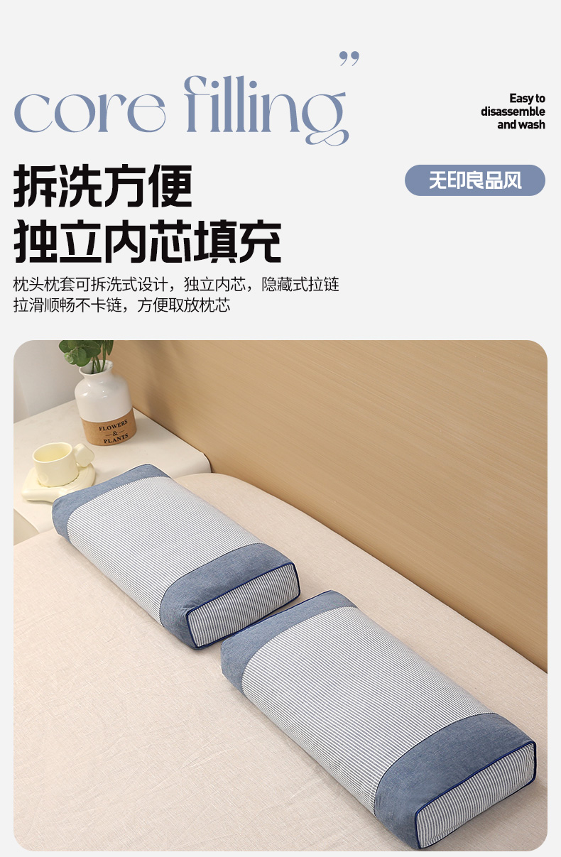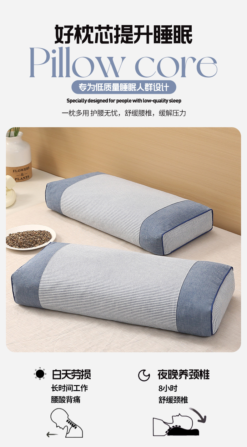 商品名称:(总)珍贝家纺 2025新款全棉纯棉简约条纹款宫廷全荞麦壳枕 枕头枕芯