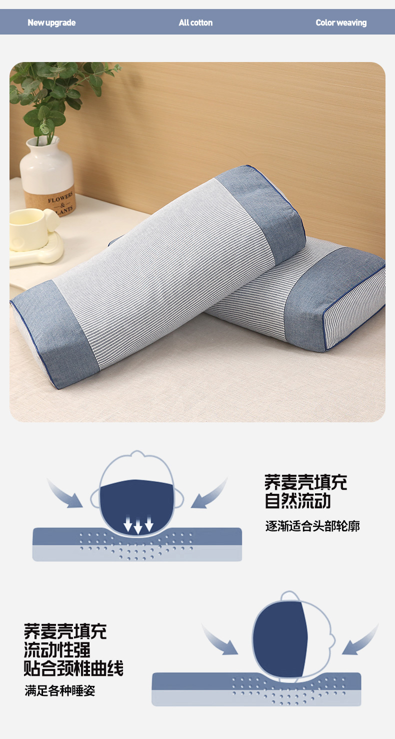 (总)珍贝家纺 2025新款全棉纯棉简约条纹款宫廷全荞麦壳枕 枕头枕芯