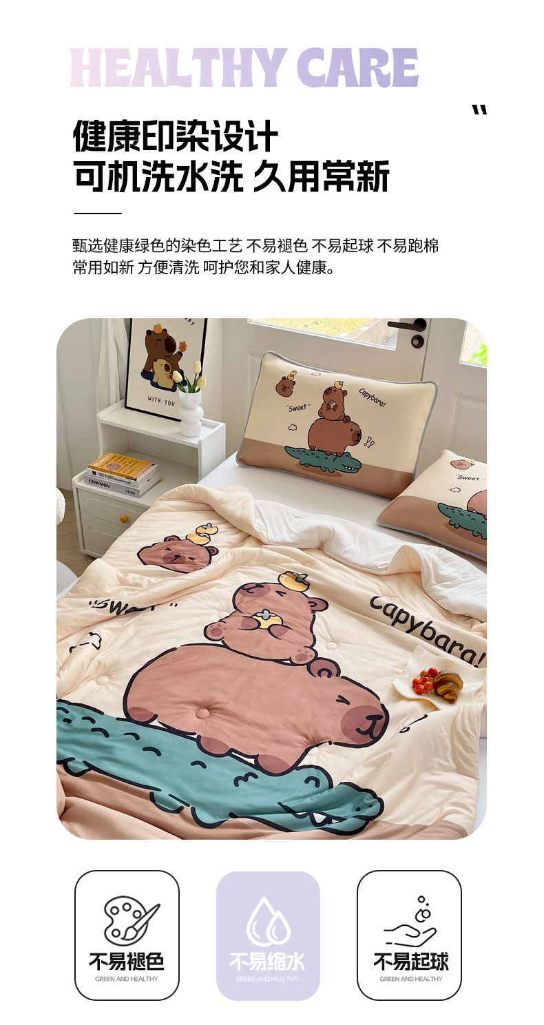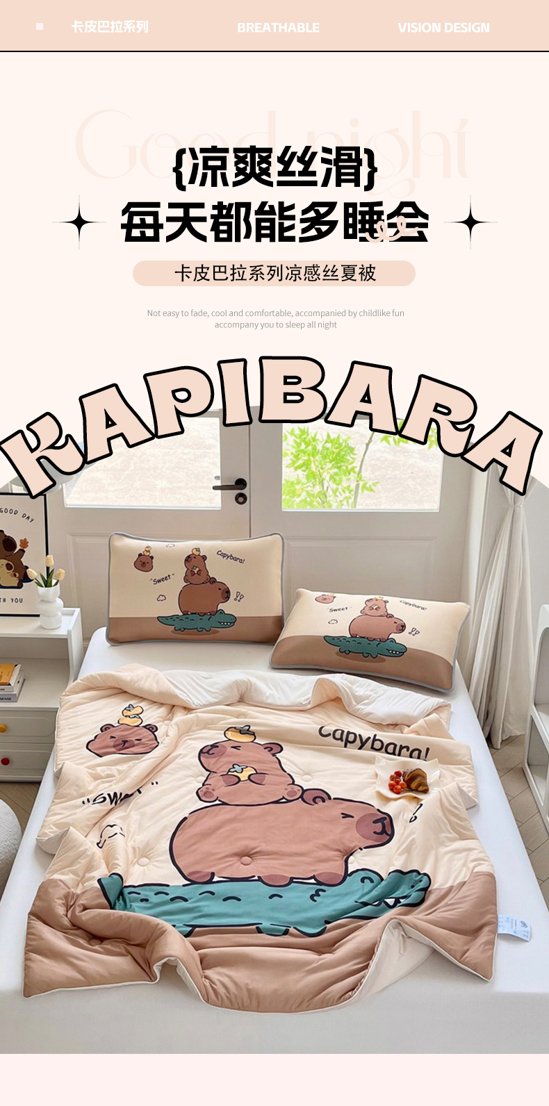 (总)蘭菲家纺 2025新款凉感丝卡皮巴拉夏被,爱滑板,爱皮卡,沉浸式,大美豚,拉不动,拉小鸭,陪伴拉,皮小蛋,皮小萌,豚世界,豚一家,小卡,小奶豚,熊巴拉,征服拉