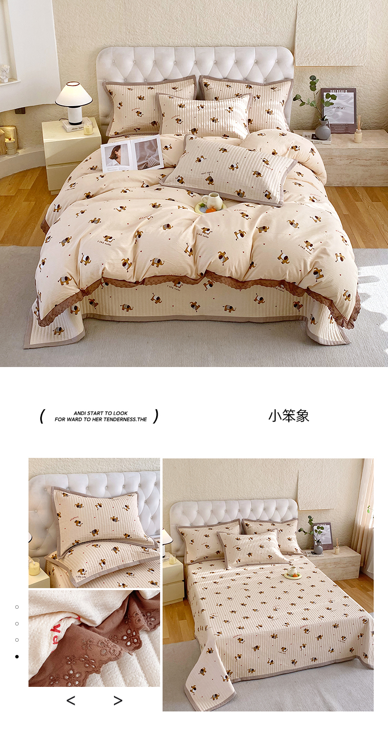 当前位置: 91家纺网 > 商品网购 > 床品套件 > 四件套 > 其它四件套 > 威布斯 2025新款皱皱纱床盖款四件套小笨象
