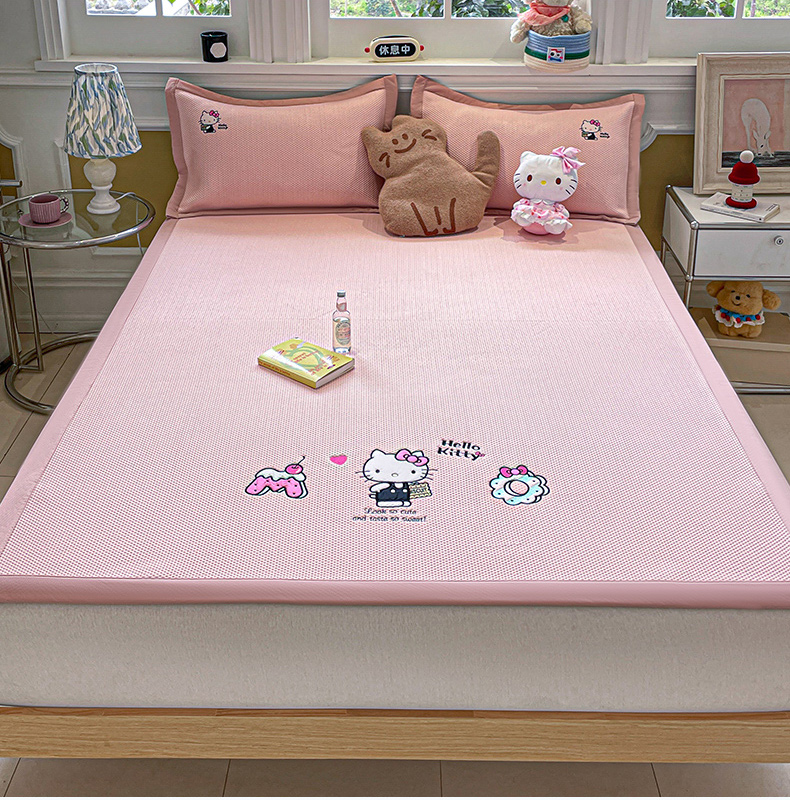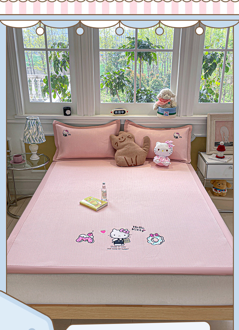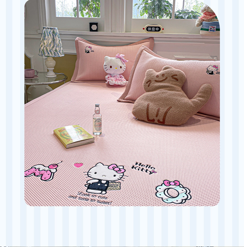 蓝邻家纺 2025年新款PE提花正版三丽鸥刺绣凉席系列-场景一 魔法凯蒂猫