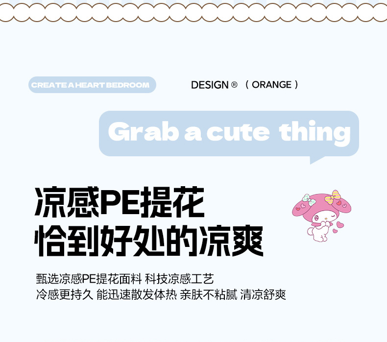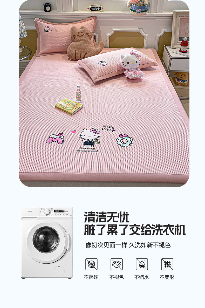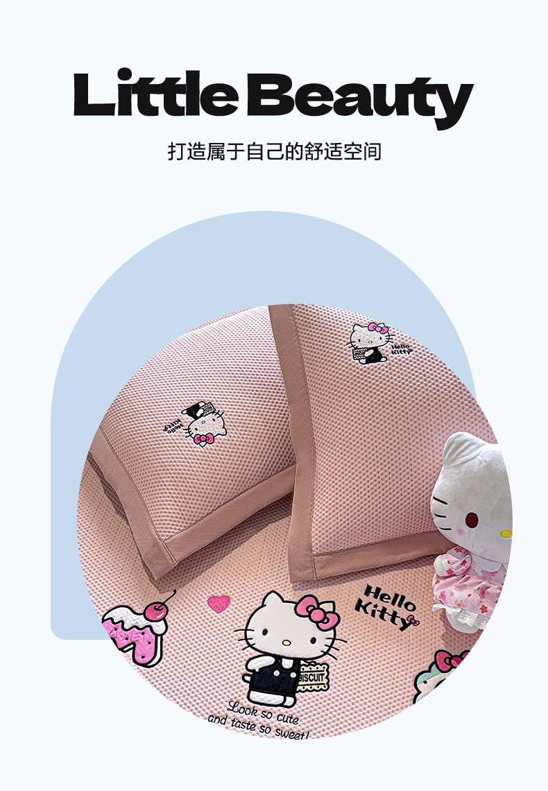 商品名称:蓝邻家纺 2025年新款PE提花正版三丽鸥刺绣凉席系列-场景一 魔法凯蒂猫