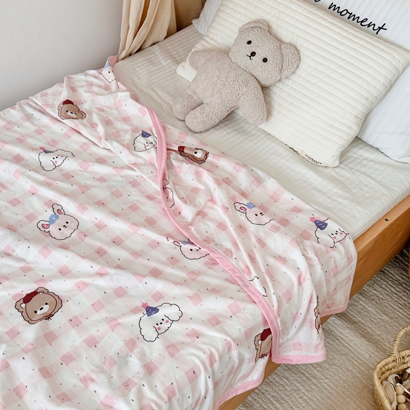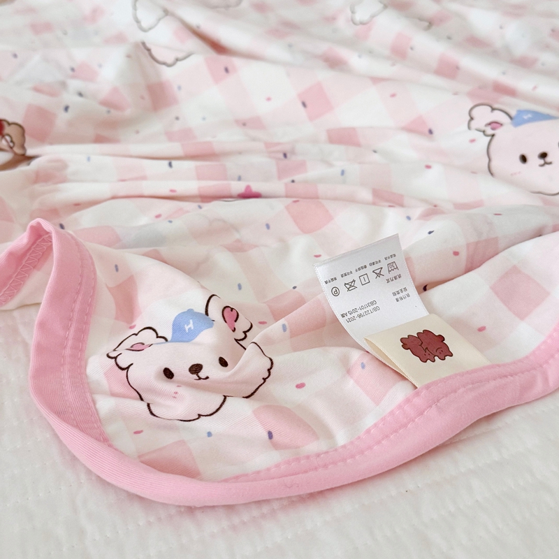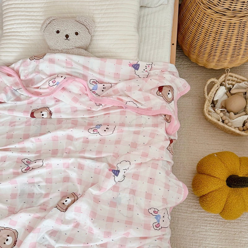 星期八 2025新款婴儿裸睡级冰丝毯凉感毯 格子熊粉