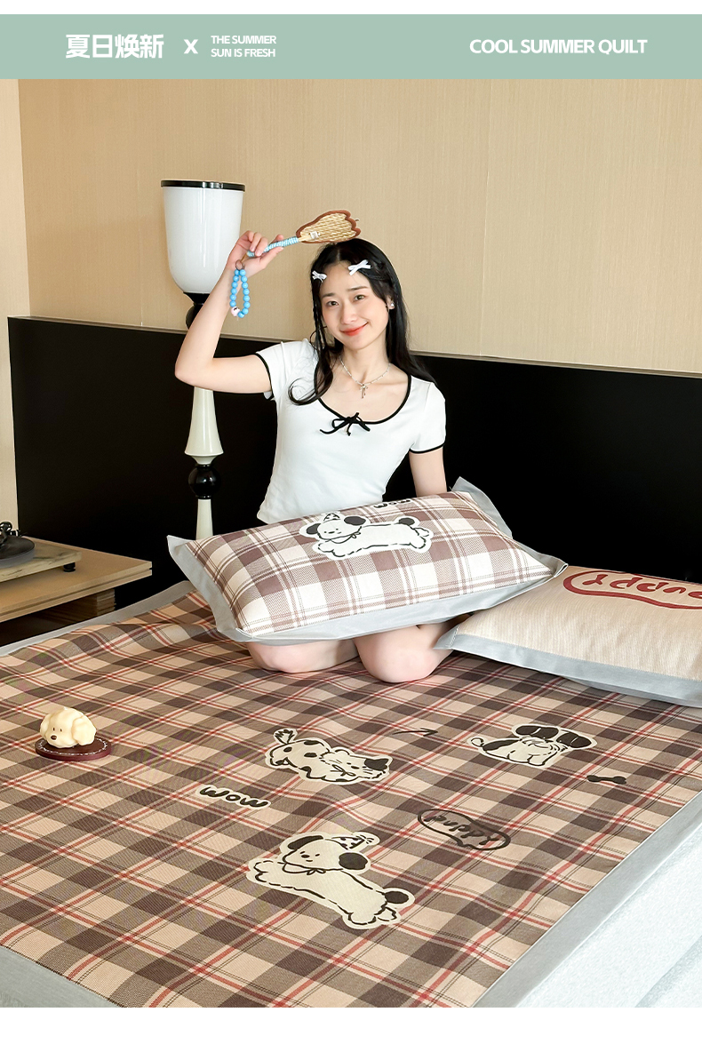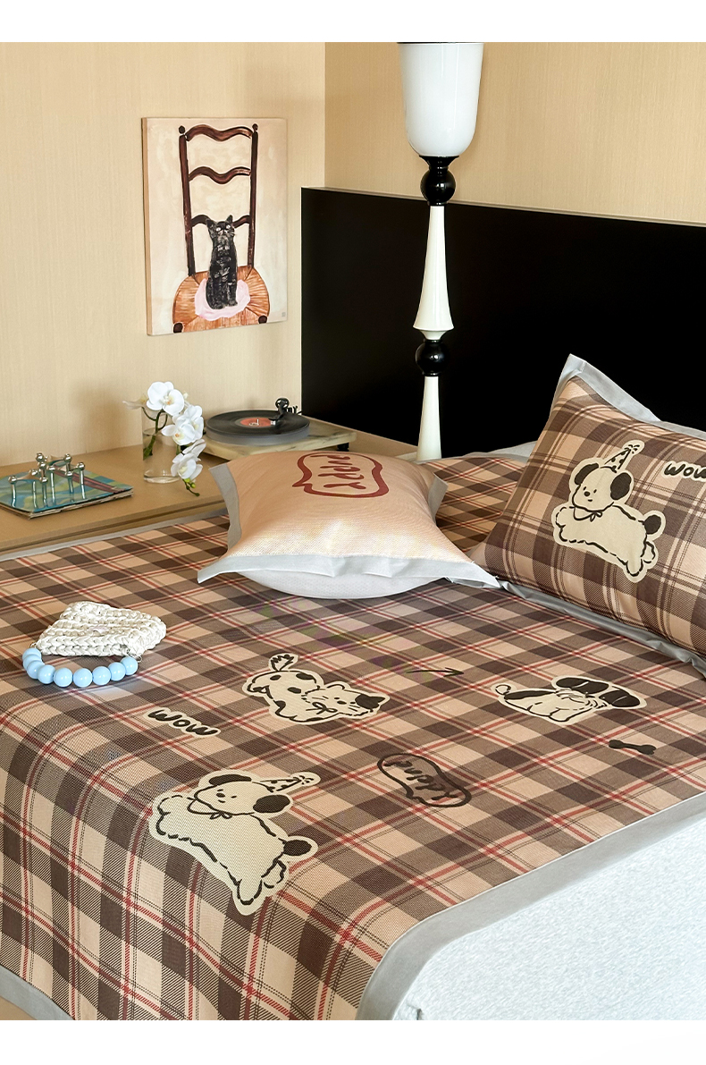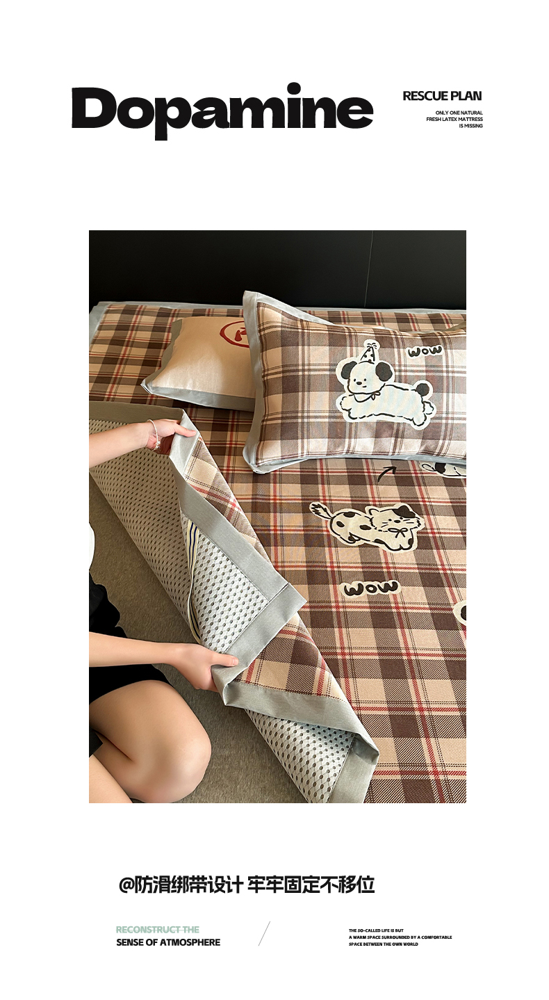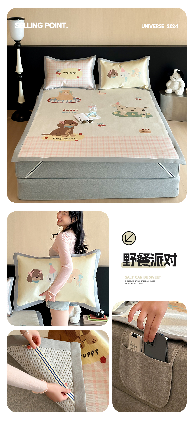 圆岛家纺 2025春夏新款高克重900D冰丝凉席席子 面包小狗