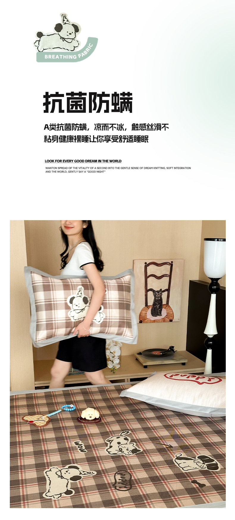 商品名称:圆岛家纺 2025春夏新款高克重900D冰丝凉席席子 面包小狗