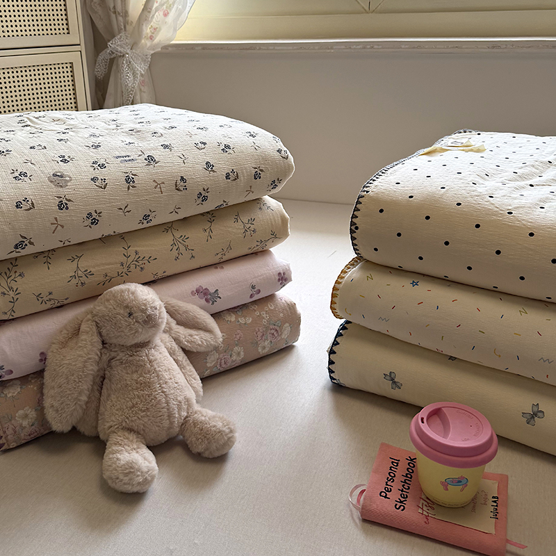 晚爱家纺(原晚安家居) 2025新款A类母婴级云感双层纱三角针夏被贝壳边夏凉被春夏贝壳绣【可提供买家秀】 叠拍图