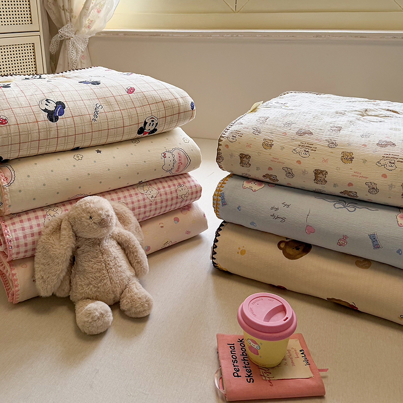 商品名称:晚爱家纺(原晚安家居) 2025新款A类母婴级云感双层纱三角针夏被贝壳边夏凉被春夏贝壳绣【可提供买家秀】 叠拍图