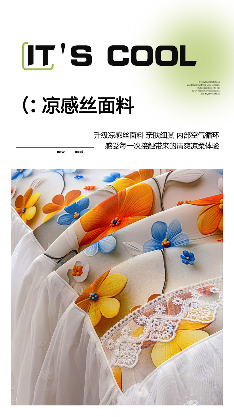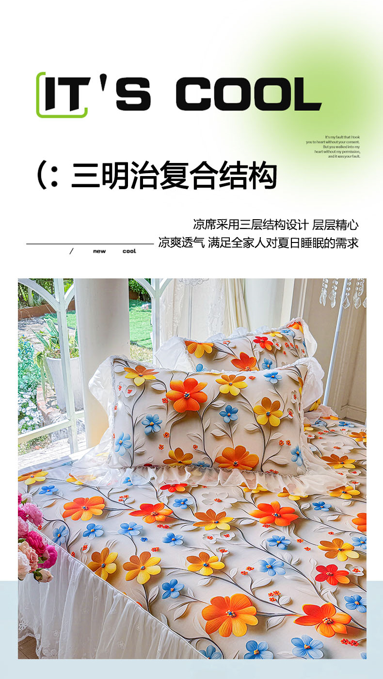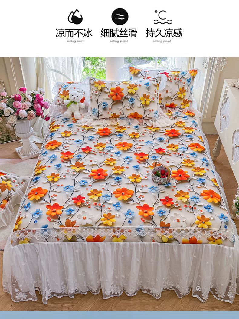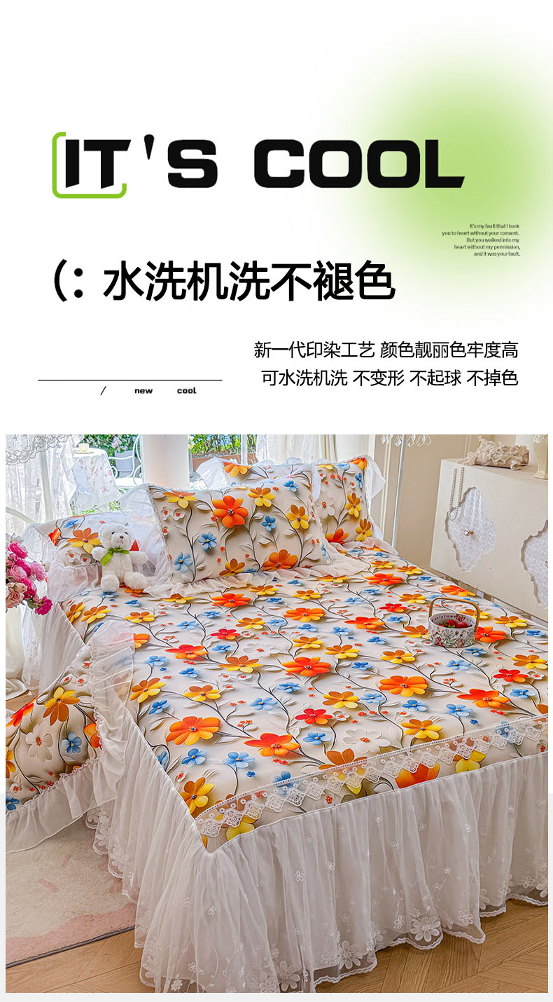 商品名称:罗艺轩 2025新款冰丝5D印花床裙凉席席子 春来时