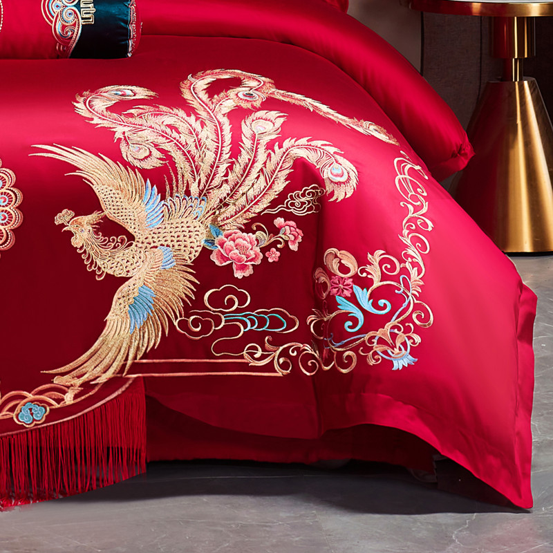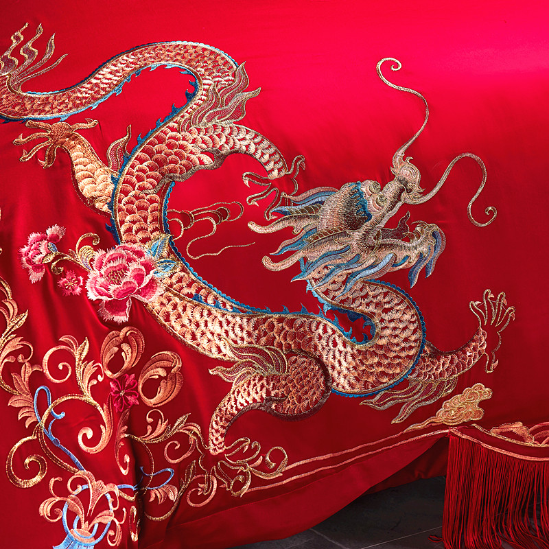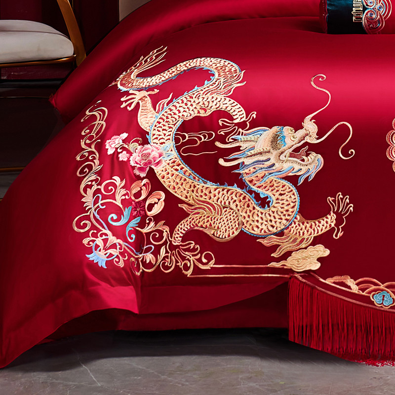 当前位置: 91家纺网 > 商品网购 > 床品套件 > 多件套 > 多件套 > 尹黛尔 2023新款婚庆四件套大红色刺绣可配多件套 美人龙凤