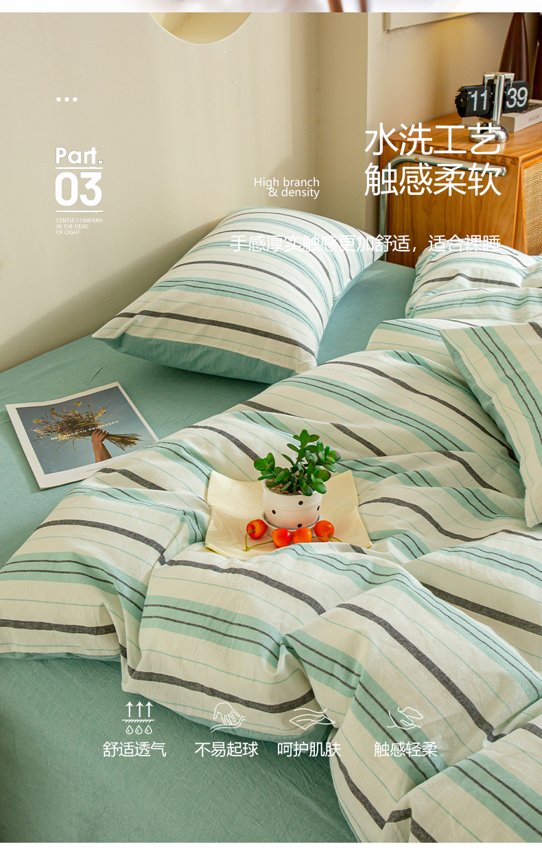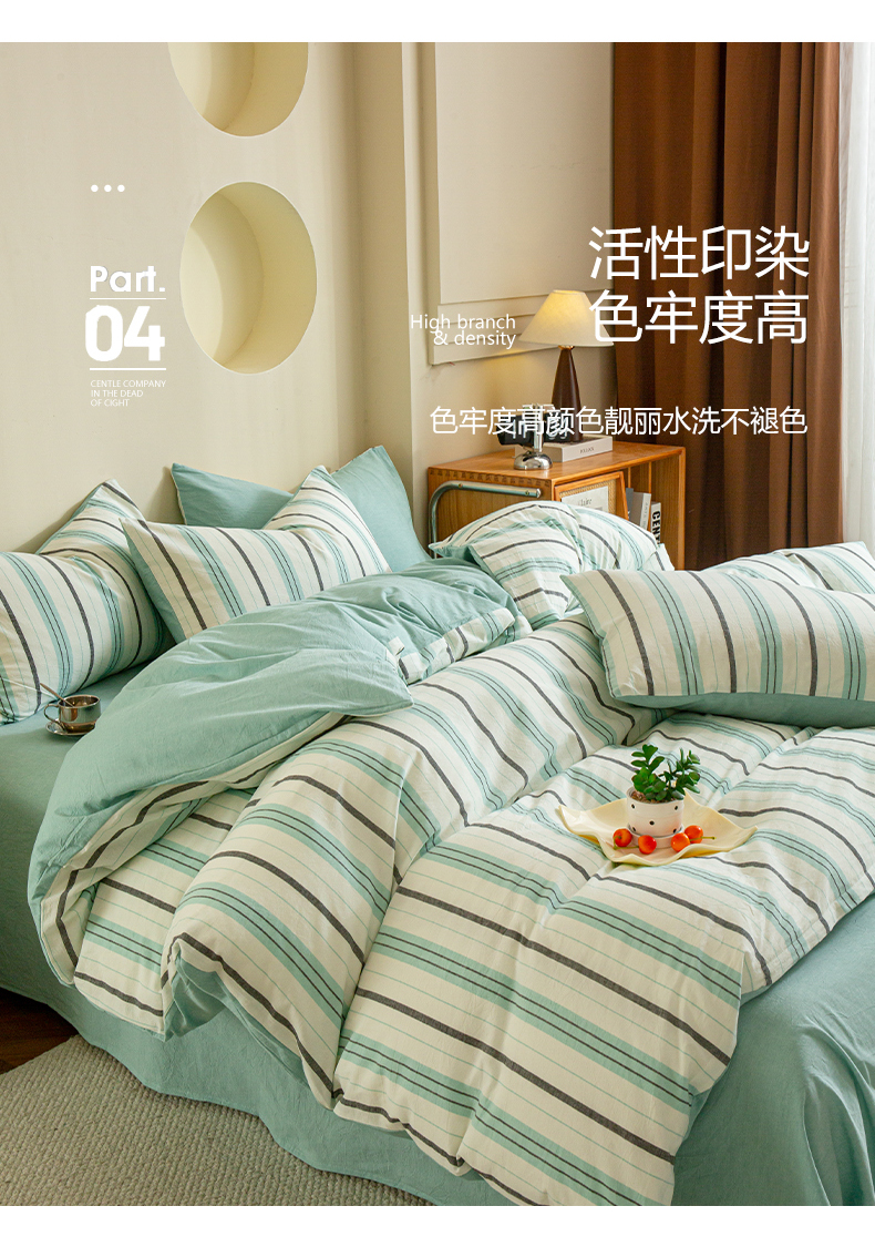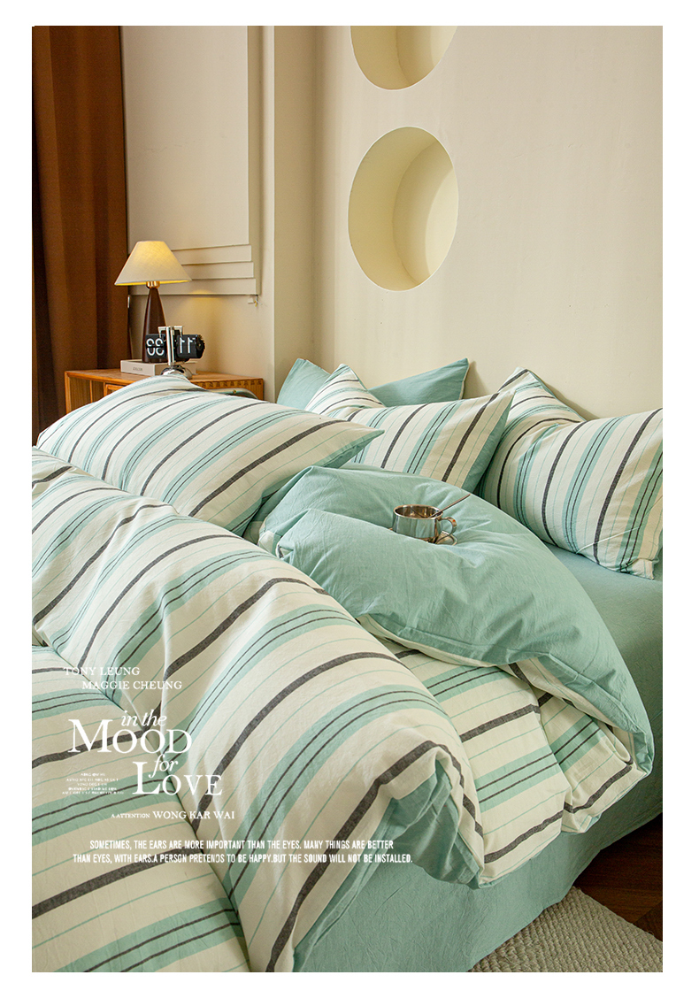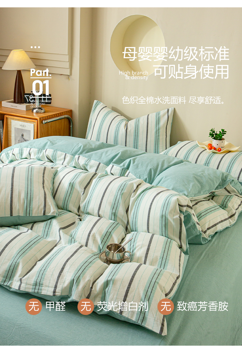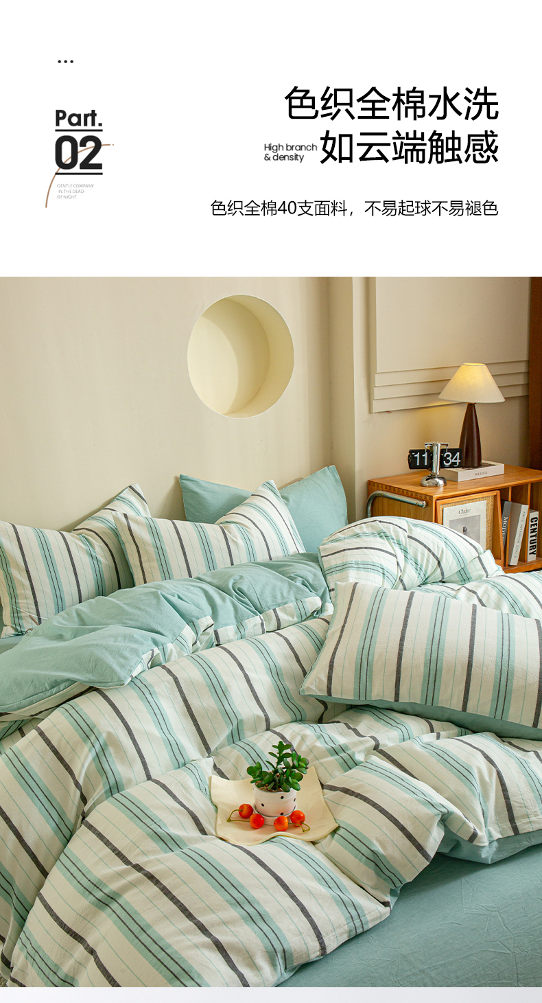 商品名称:优米家纺 2025新款色织全棉纯棉40支水洗四件套及床单系列-四件套 草原绿