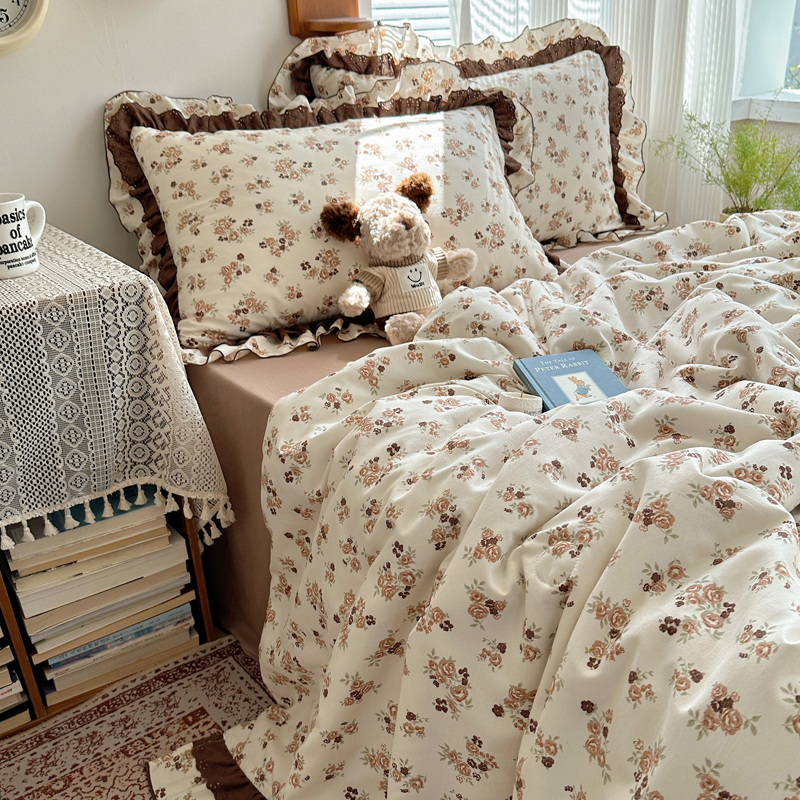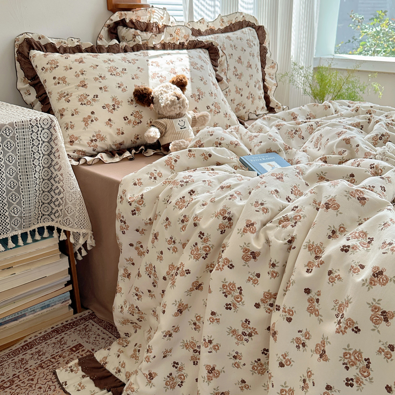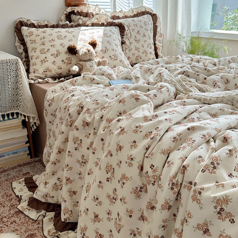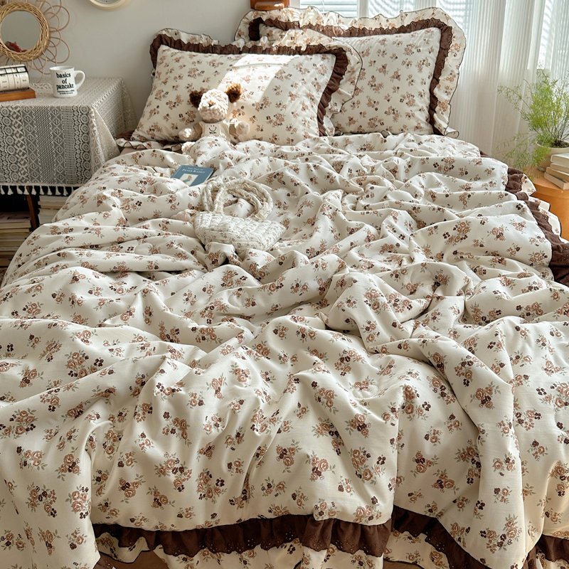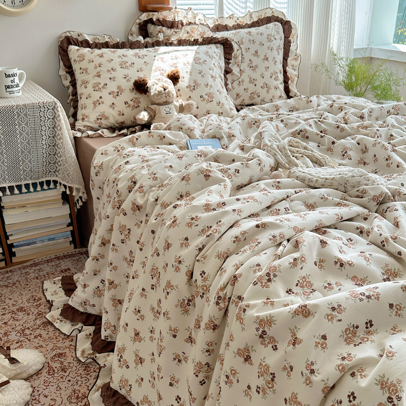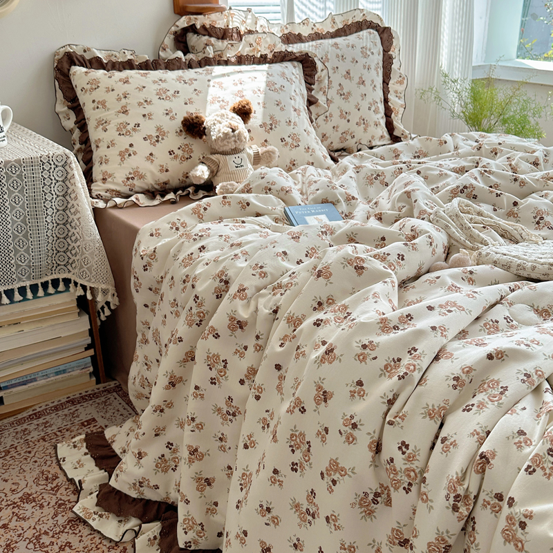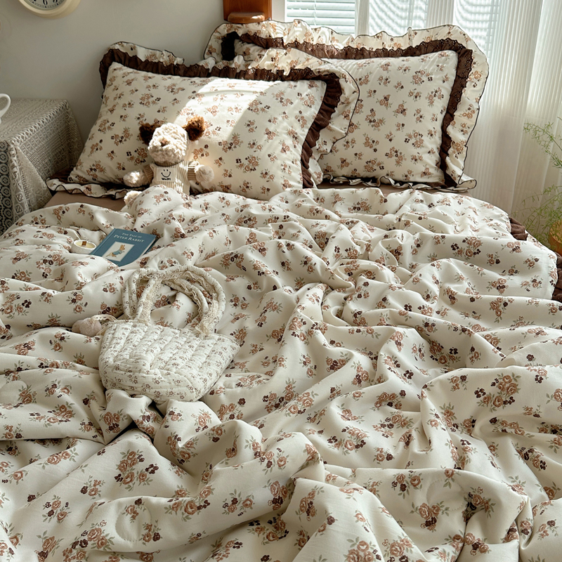 当前位置: 91家纺网 > 商品网购 > 床品套件 > 四件套 > 水洗棉四件套 > 轻奢坊 2025新款复古风双层纱水洗棉夏被四件套 夏被-木槿