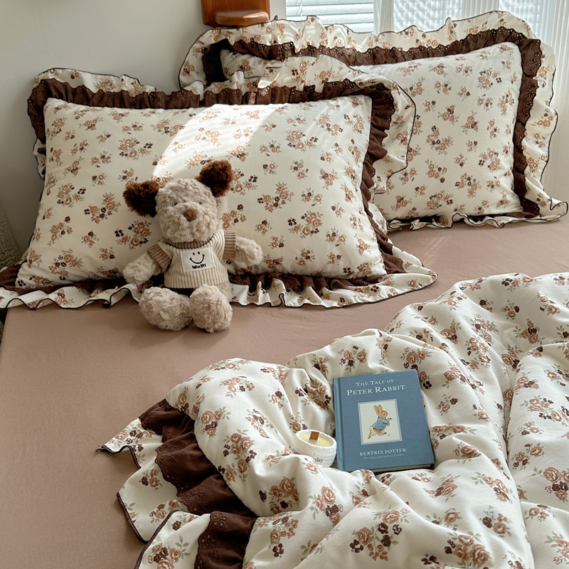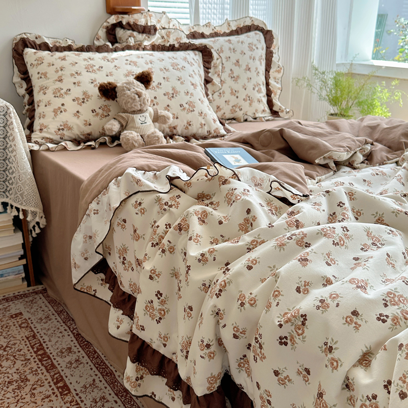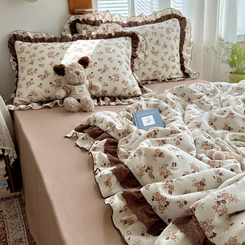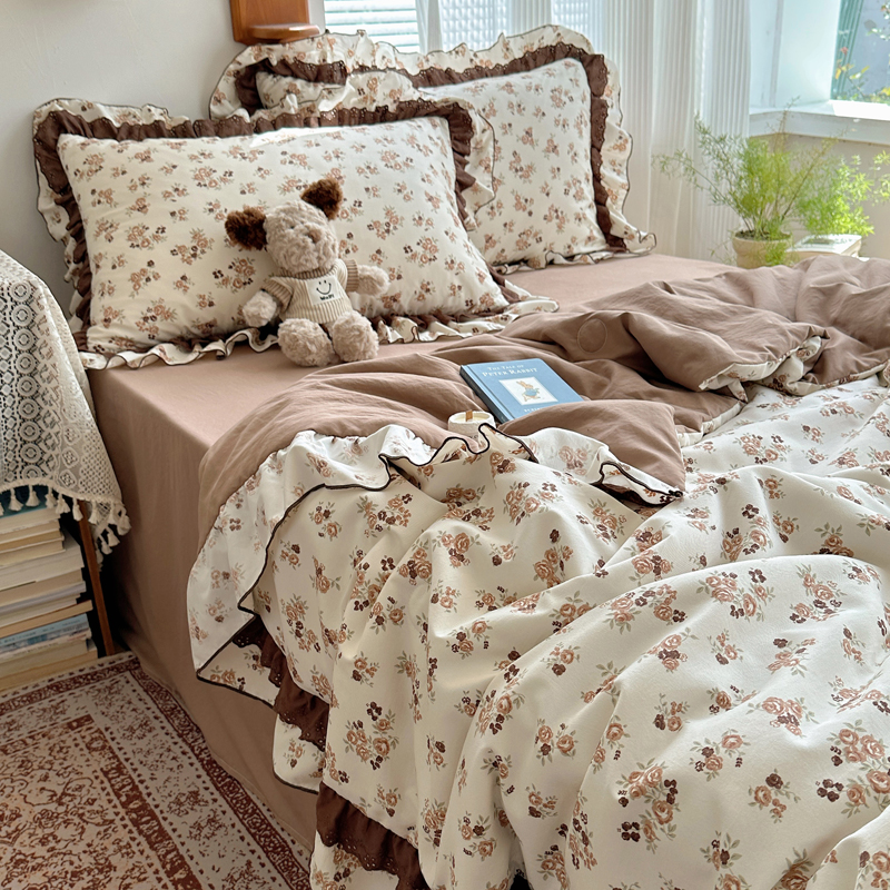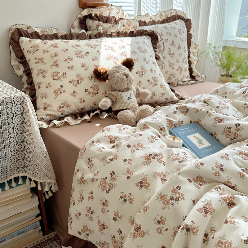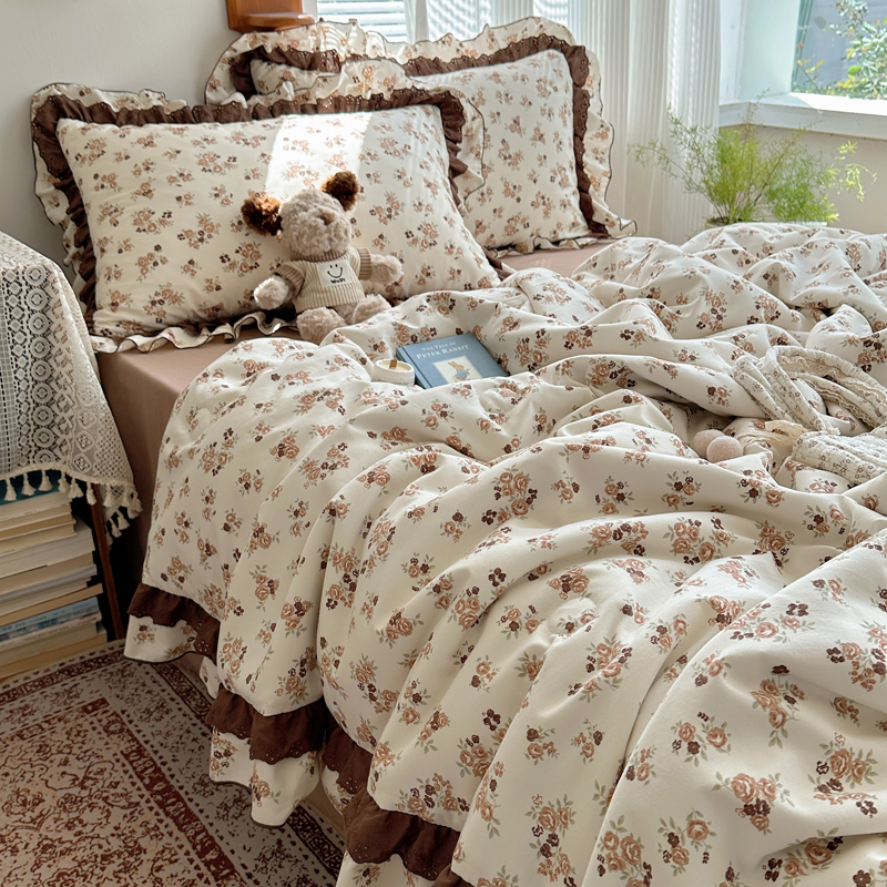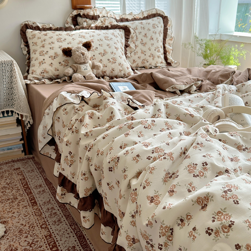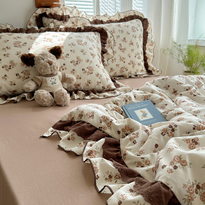 当前位置: 91家纺网 > 商品网购 > 床品套件 > 四件套 > 水洗棉四件套 > 轻奢坊 2025新款复古风双层纱水洗棉夏被四件套 夏被-木槿