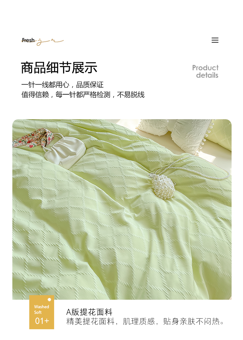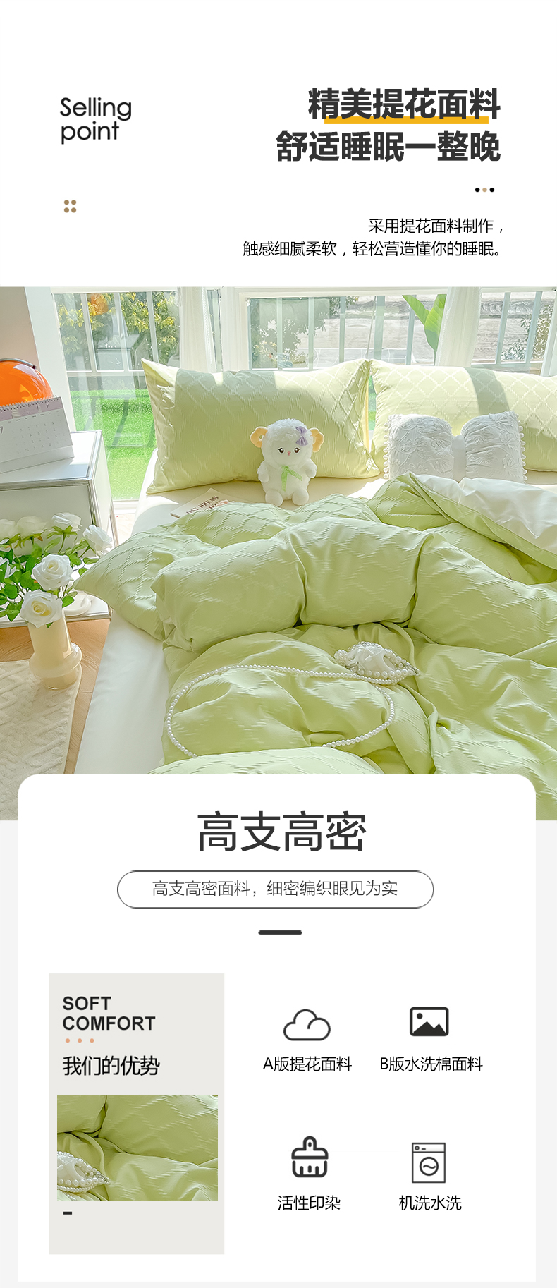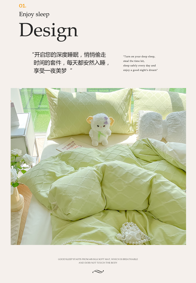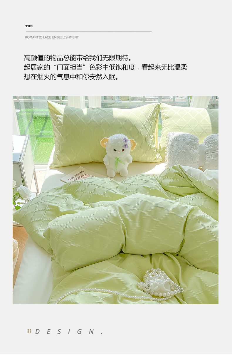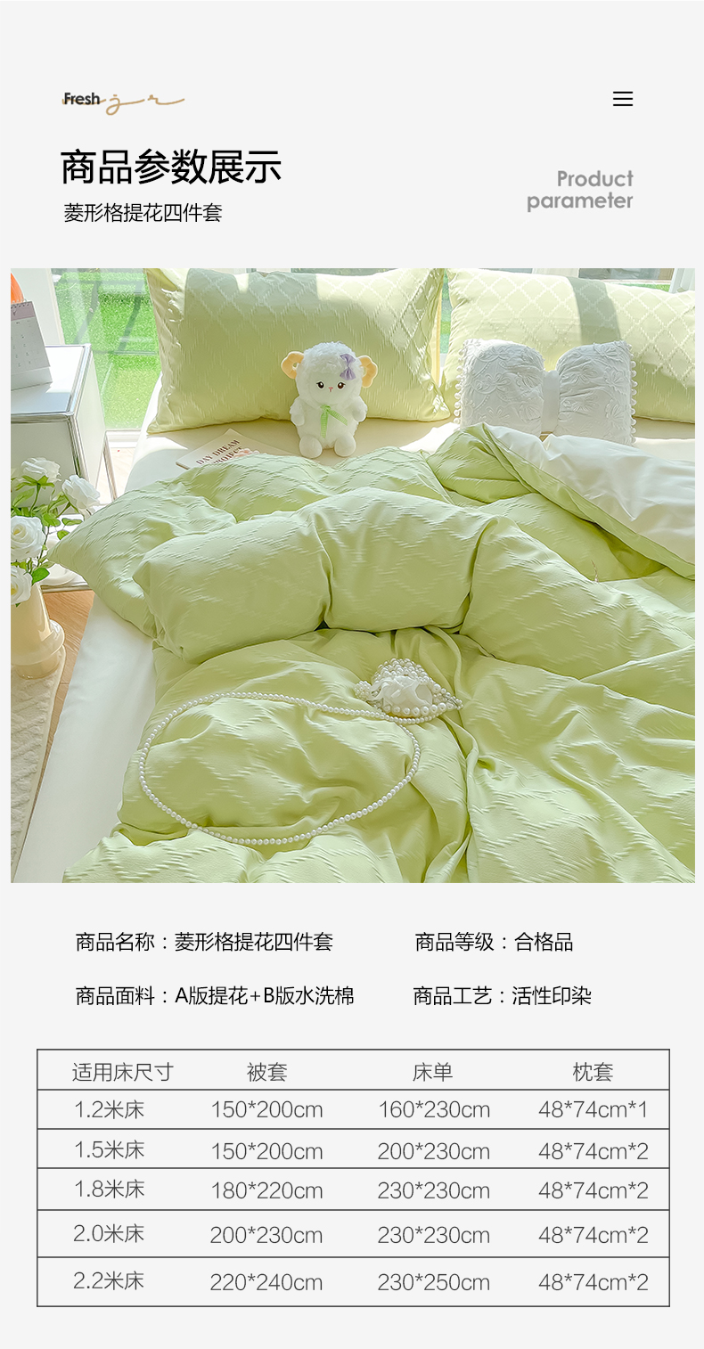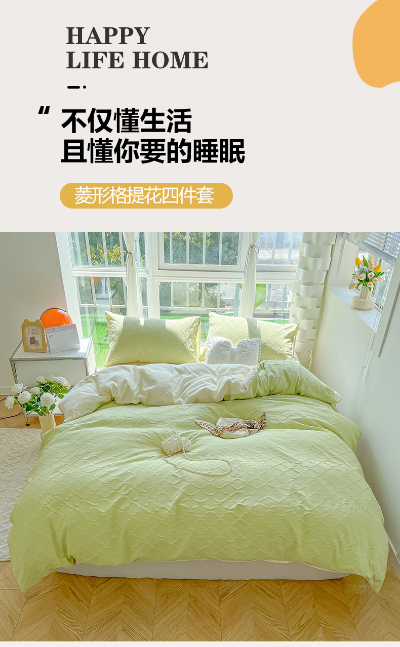 当前位置: 91家纺网 > 商品网购 > 床品套件 > 四件套 > 其它四件套 > 缦绣阁家纺 2025新款AB版菱形格简约提花四件套小清新床单款床笠款4件套生宿舍三件套 菱形格提花-果绿+芝士