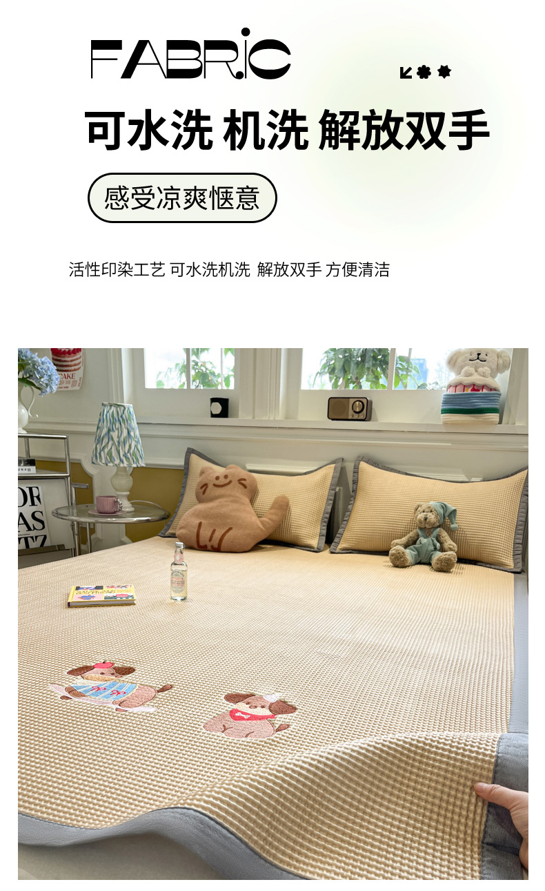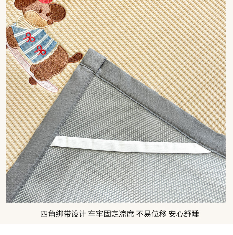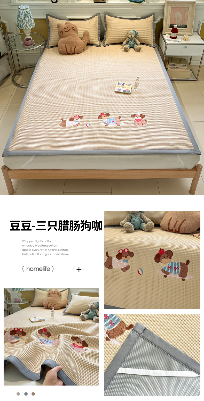 商品名称:沐慕 2025新款绣花PE凉感豆豆凉席席子 三只腊肠狗-咖