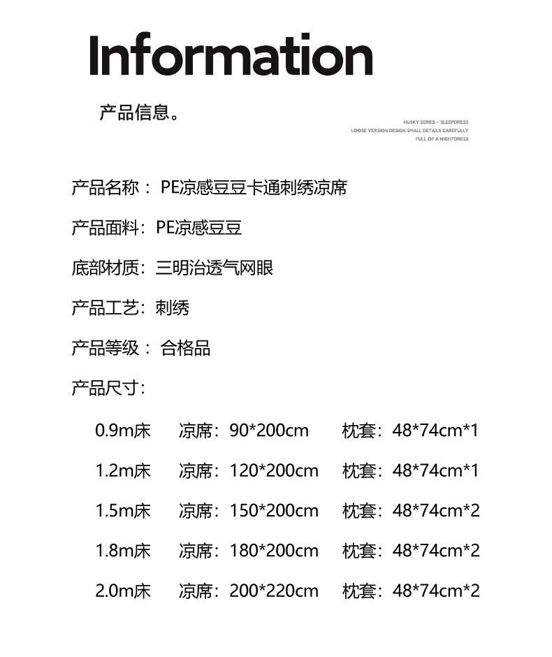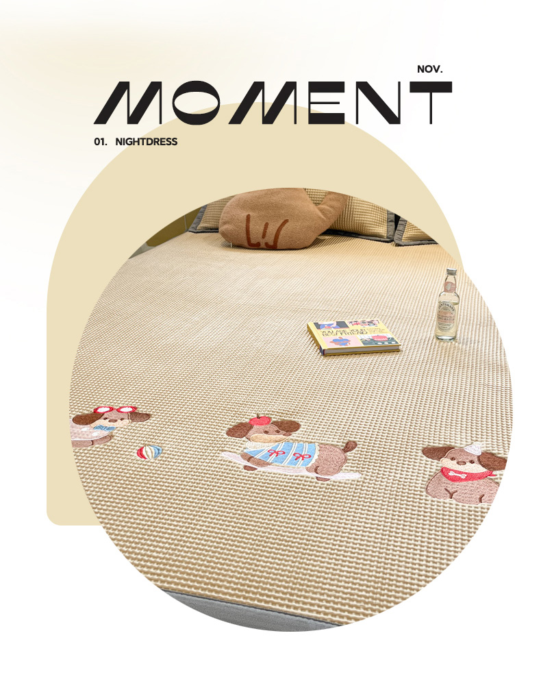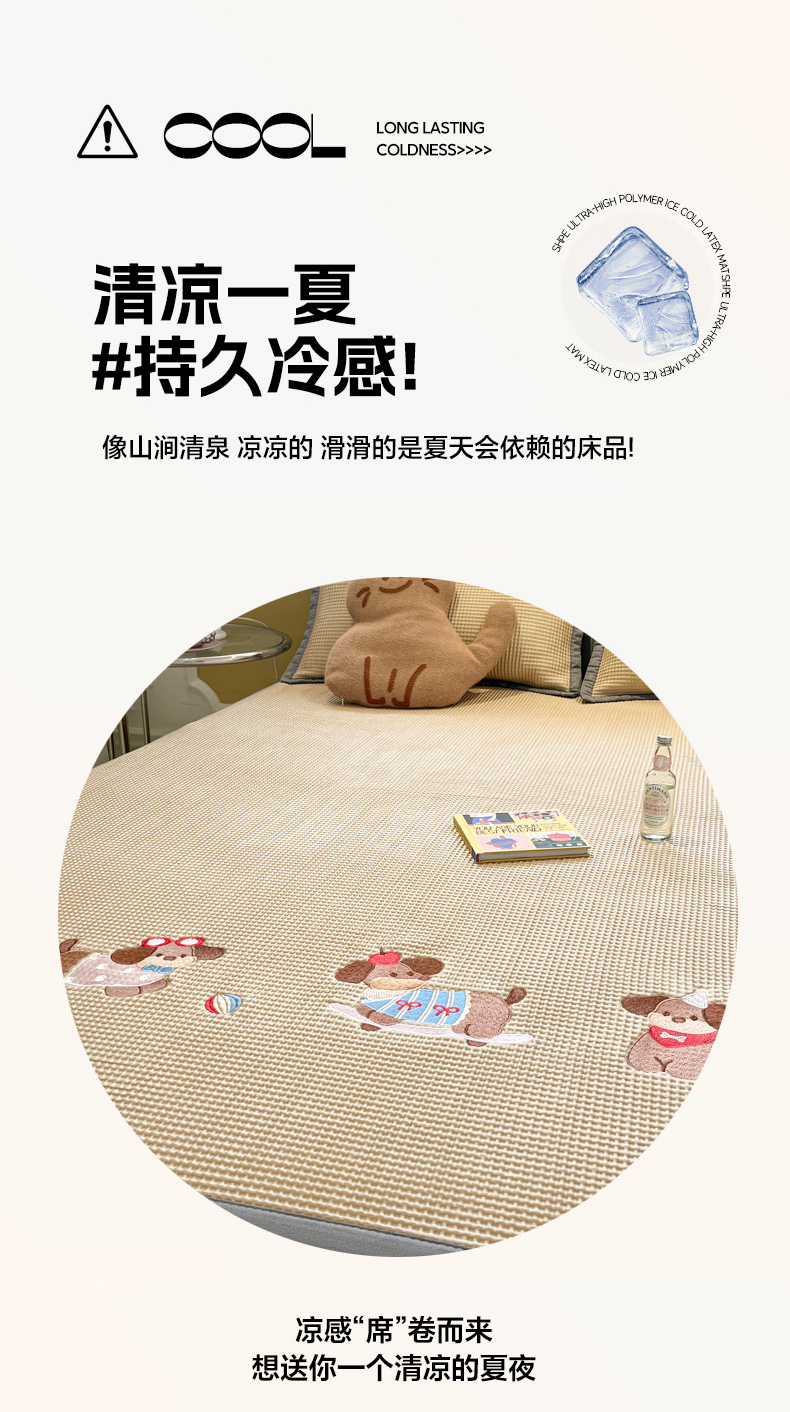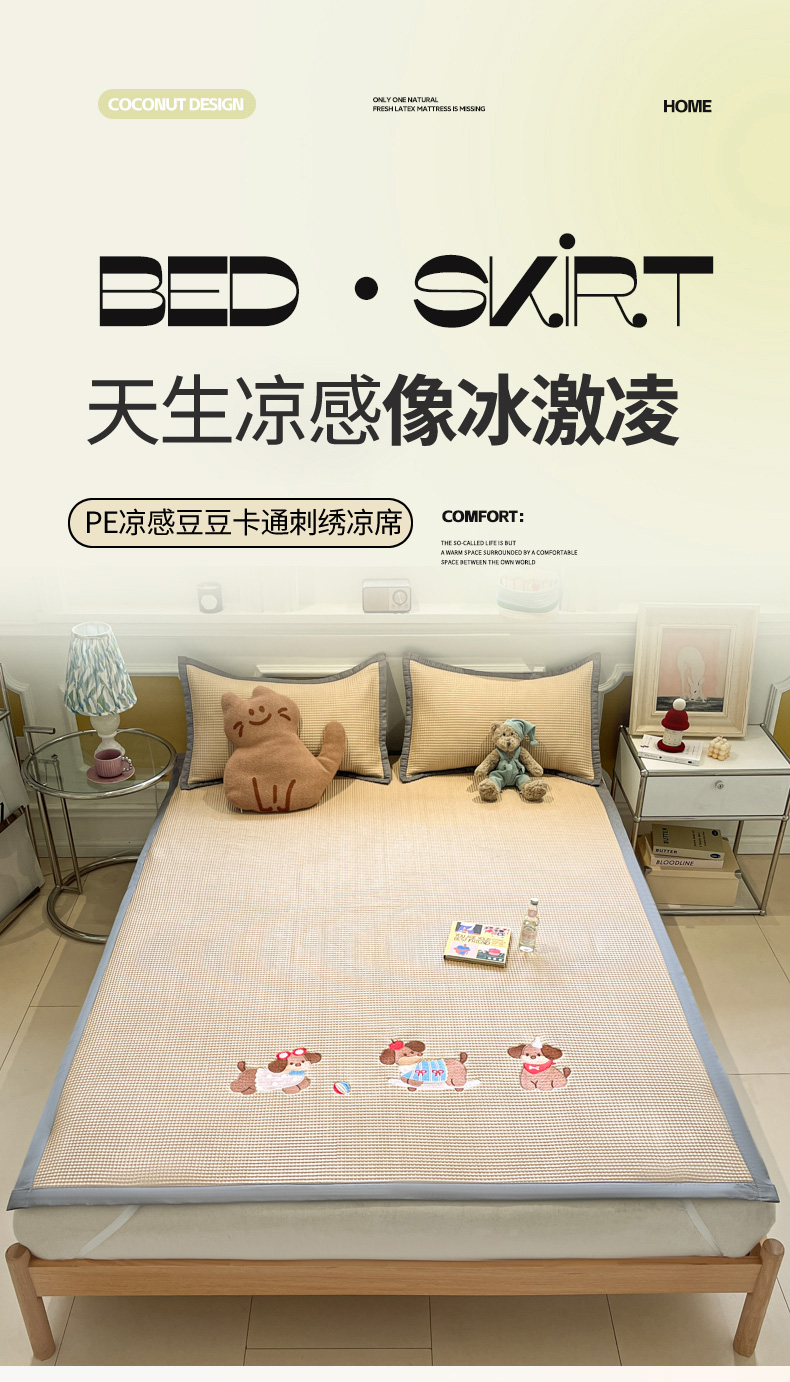 商品名称:沐慕 2025新款绣花PE凉感豆豆凉席席子 三只腊肠狗-咖