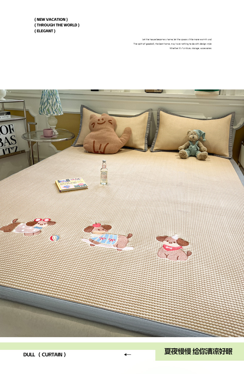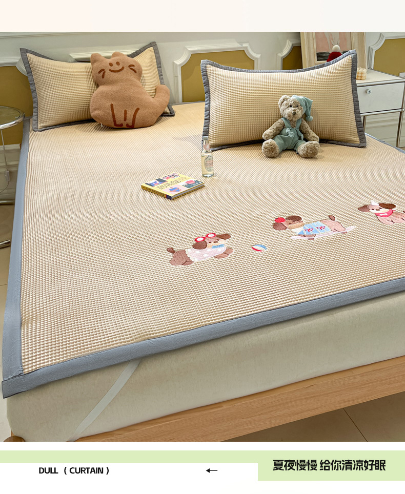沐慕 2025新款绣花PE凉感豆豆凉席席子 三只腊肠狗-咖