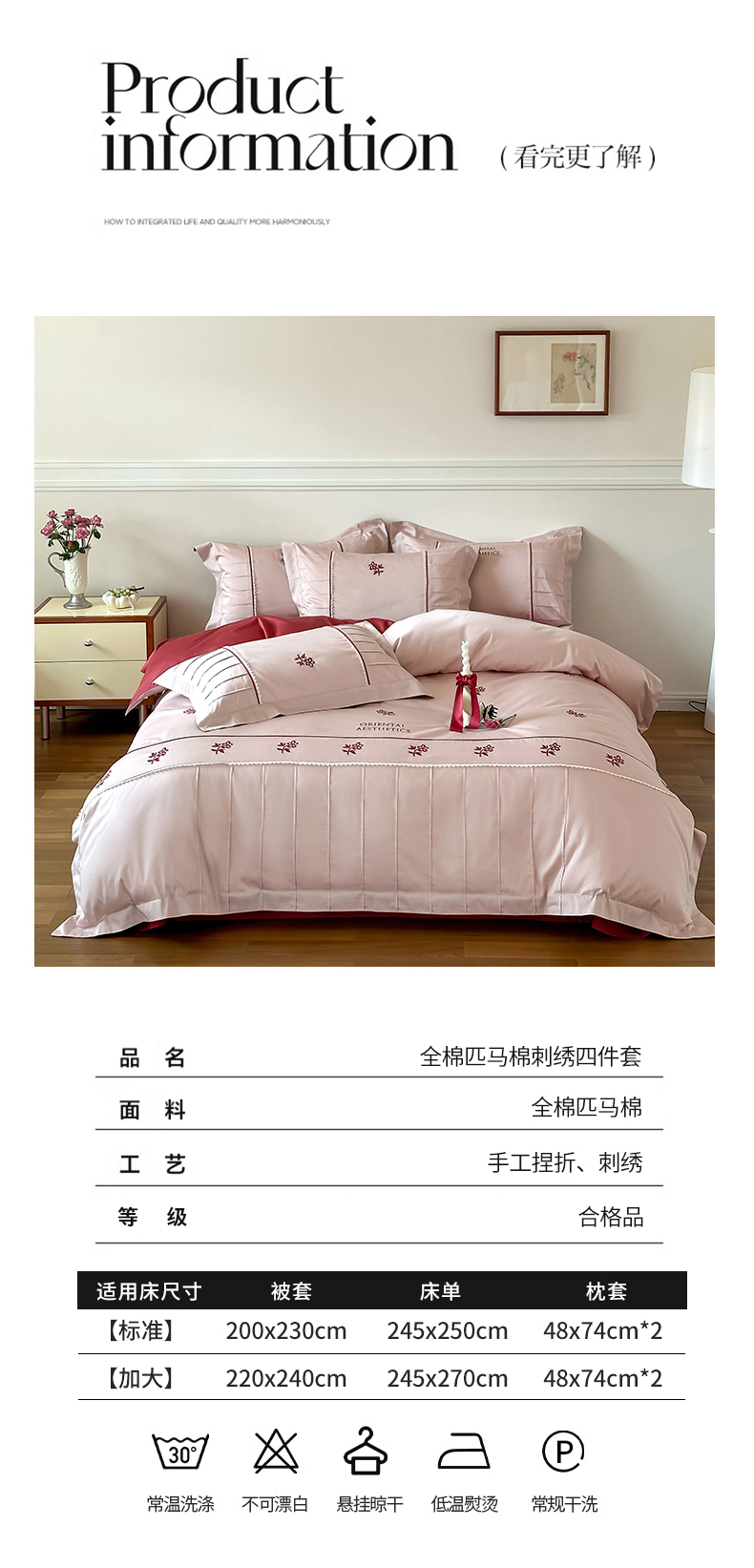 红番天婚庆 (控价)2025新款全棉新中式刺绣款婚庆四件套多件套 纯棉时尚-玫瑰花海,纯棉时尚-玫瑰花海