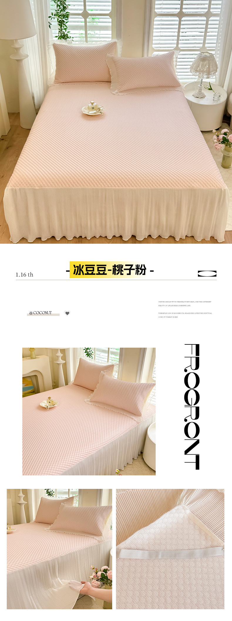 商品名称:逸尚阁 2025新款凉豆豆床裙凉席三件套 冰豆豆-桃子粉