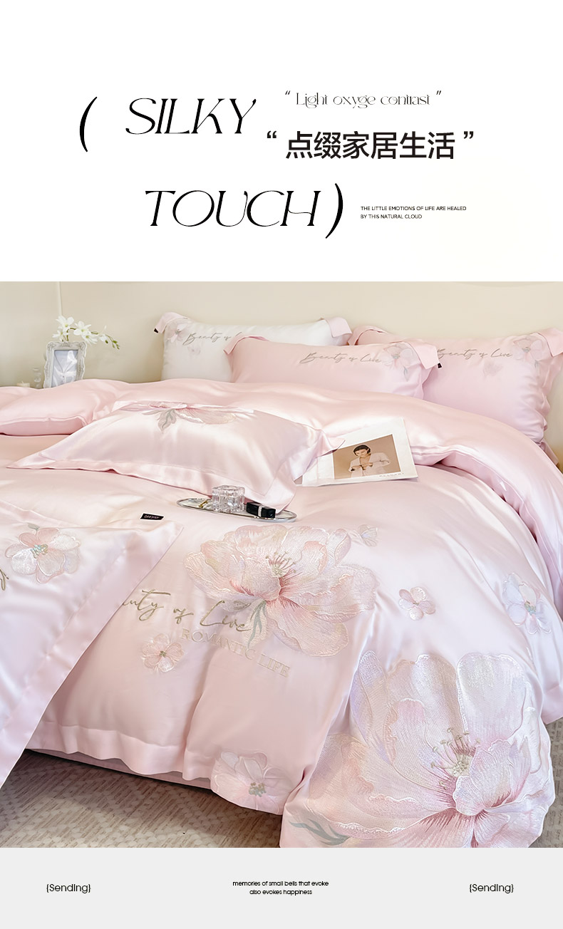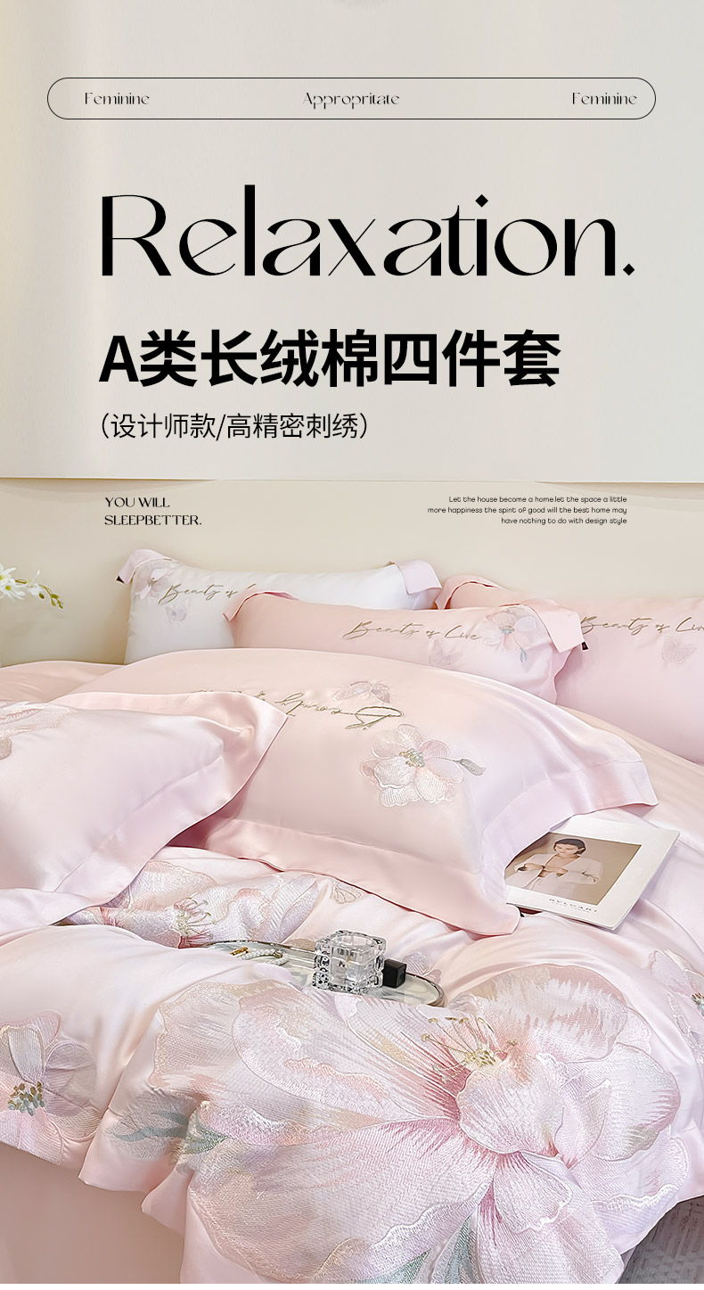 2025新款轻奢A类长绒棉四件套全棉纯棉全工艺刺绣纯色床单床笠直播爆款床上用品 曼影-颜粉