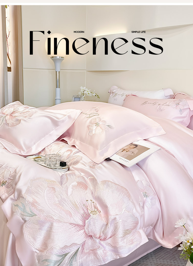 (总) 2025春夏长绒棉四件套纯棉全棉轻奢风床单被套重工刺绣床上用品,芊羽梦-白粉,芊羽梦-茶绿,芊羽梦-黛紫,芊羽梦-慕蓝,芊羽梦-颜粉