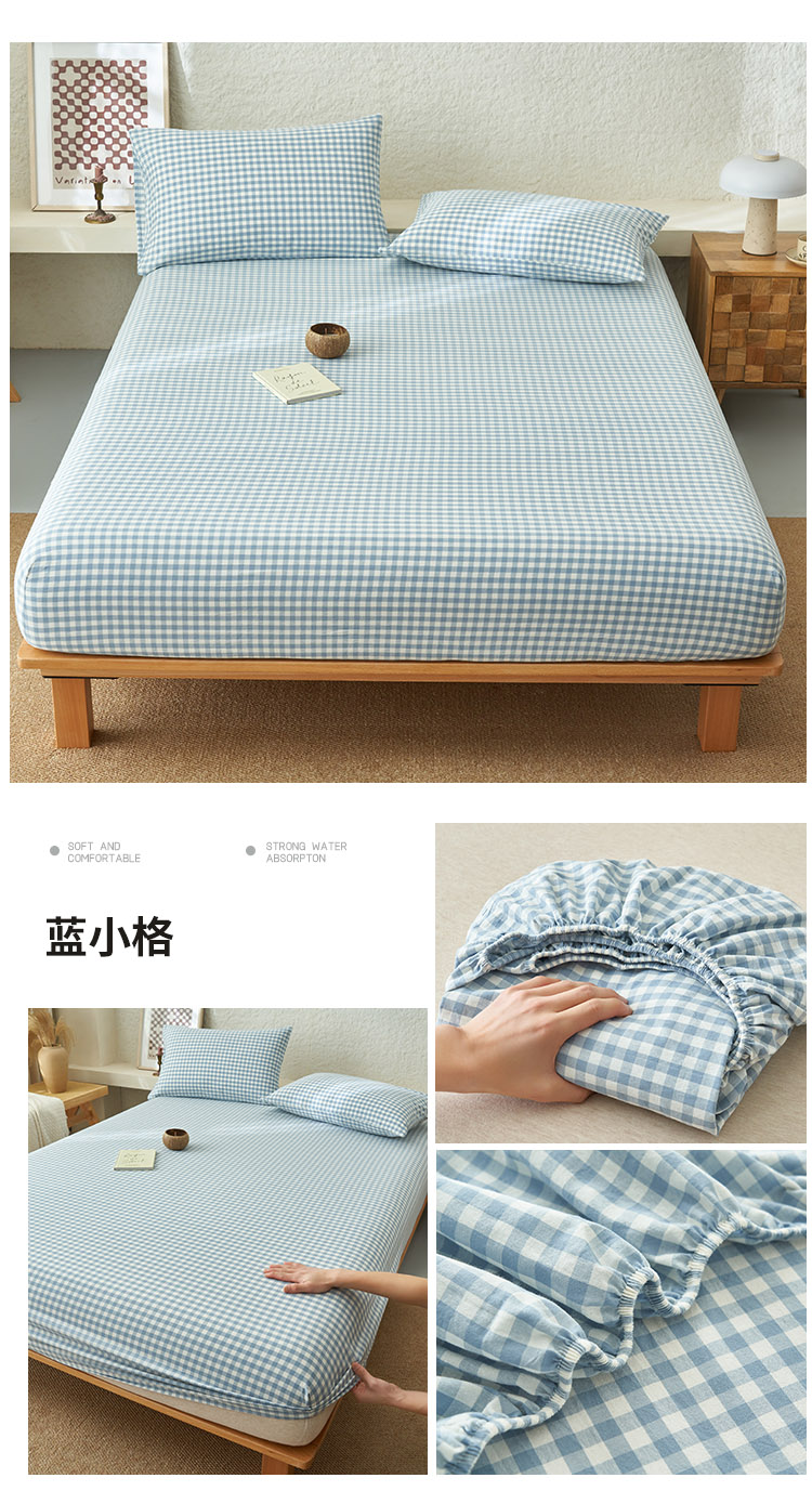 早晨家纺 2025新款色织纯棉水洗棉床笠 蓝小格