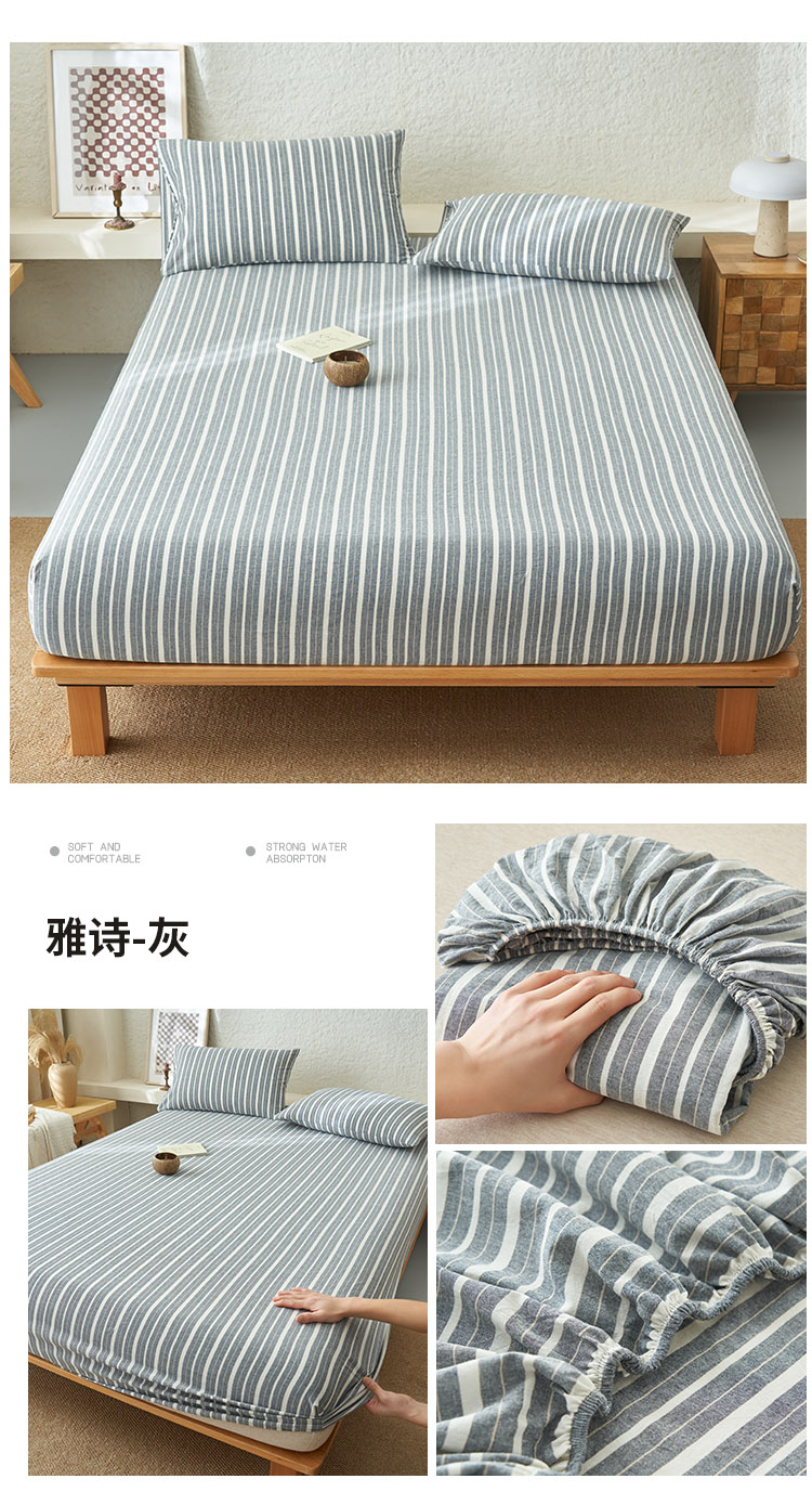 • 91家纺网 家纺一手货源 找家纺 早晨家纺 2025新款色织纯棉水洗棉床笠 雅诗-灰