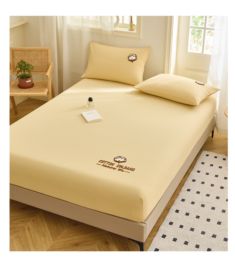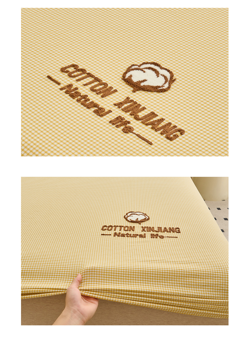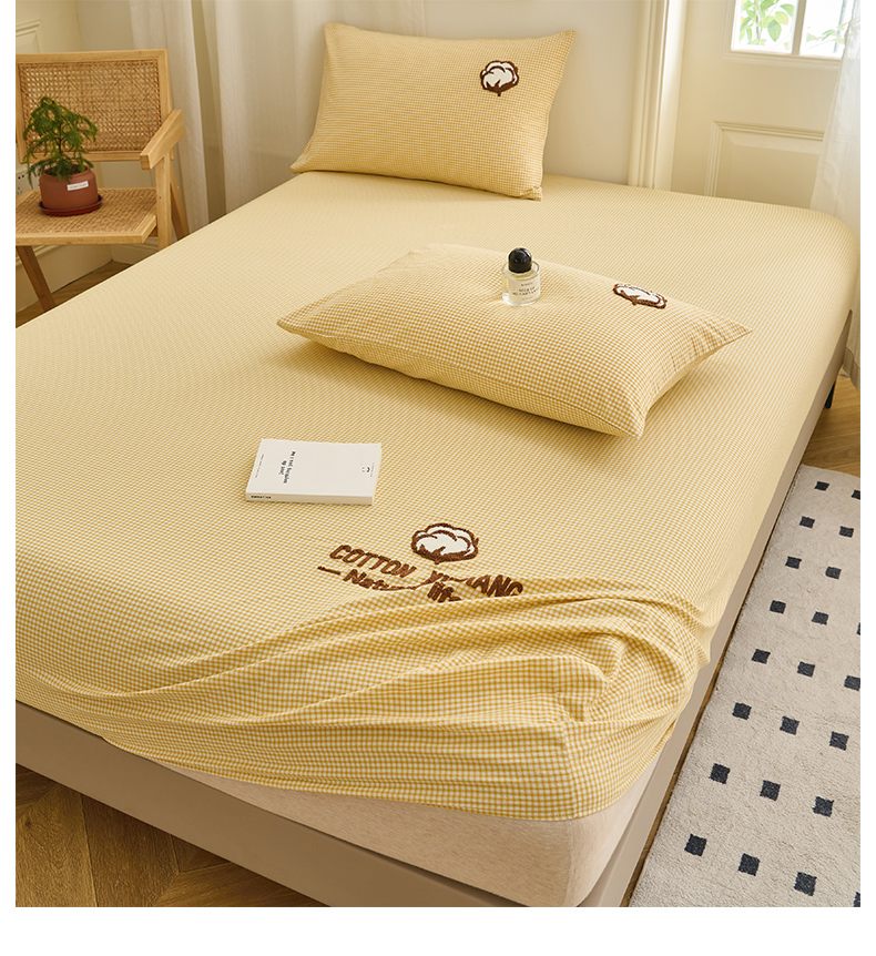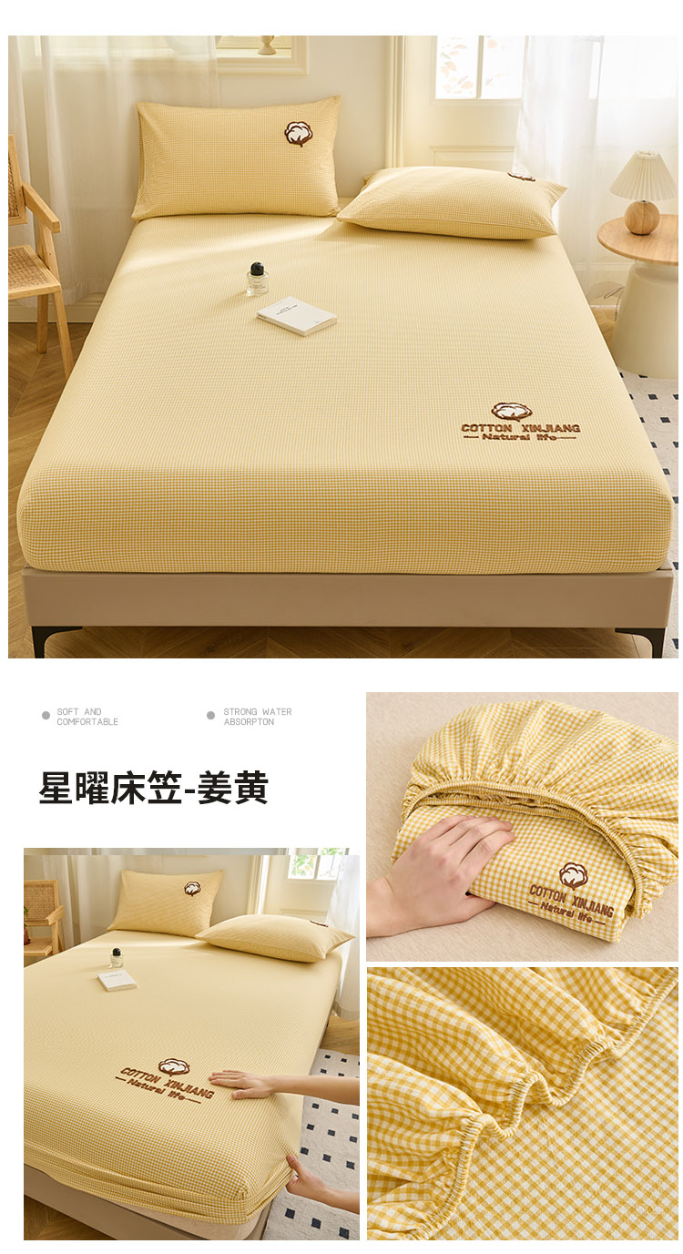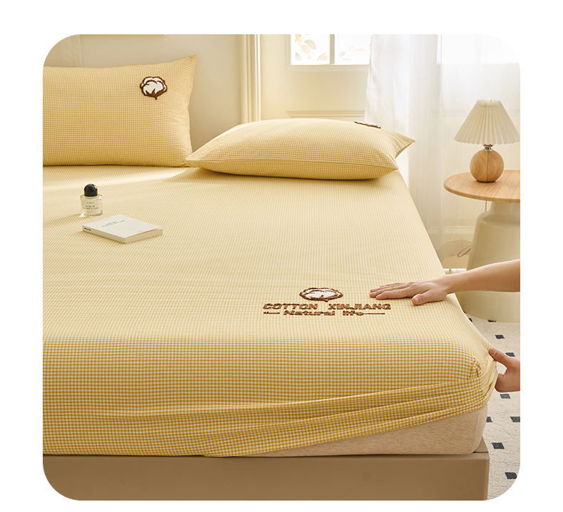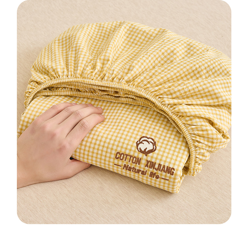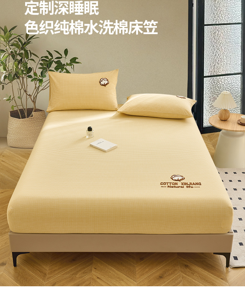 早晨家纺 2025新款色织纯棉水洗棉毛巾绣床笠 星曜床笠-姜黄
