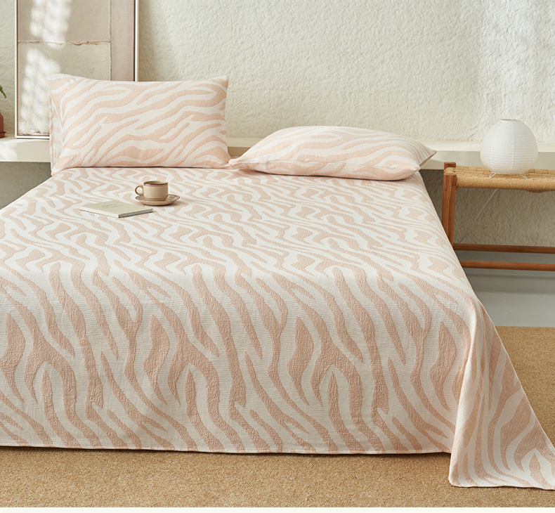 早晨家纺 2025新款三层纱纯棉提花床单 斑马纹床单-咖色