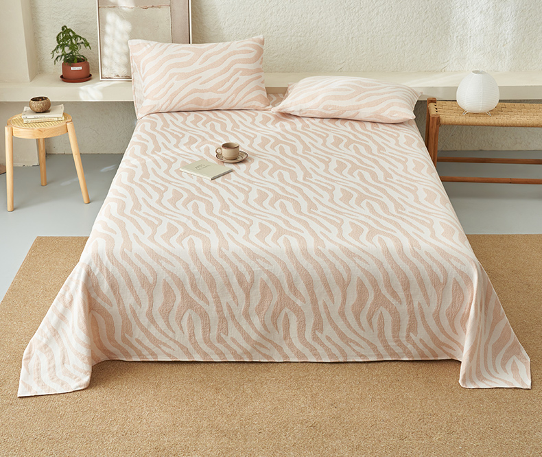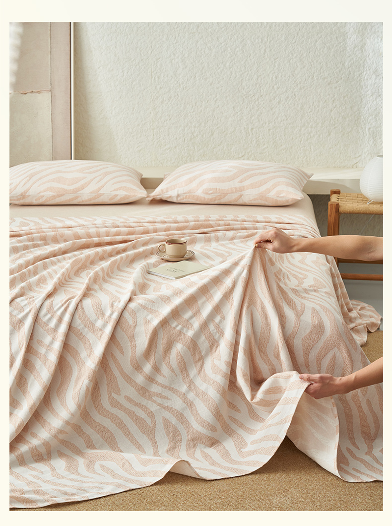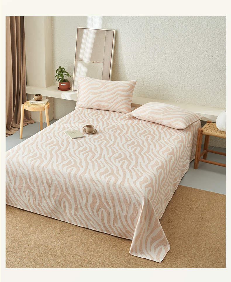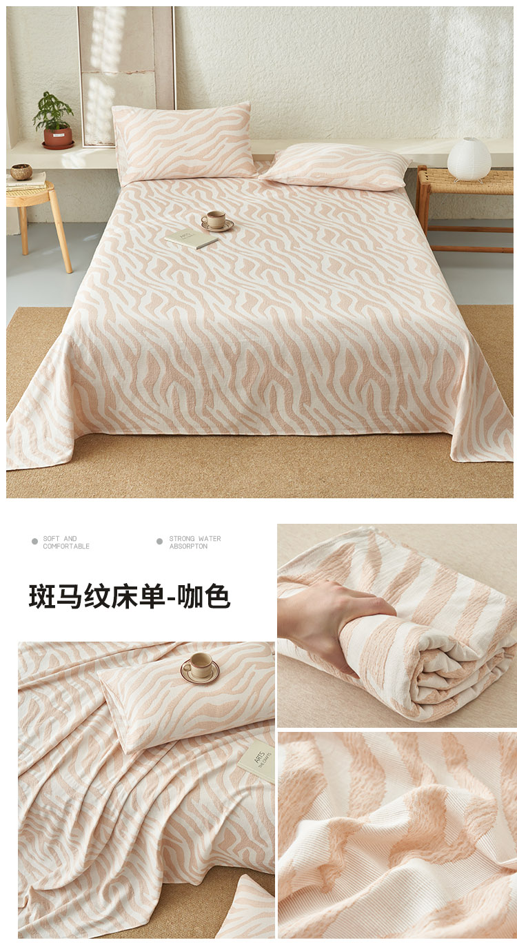 • 91家纺网 家纺一手货源 找家纺 早晨家纺 2025新款三层纱纯棉提花床单 斑马纹床单-咖色