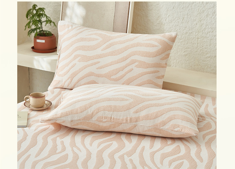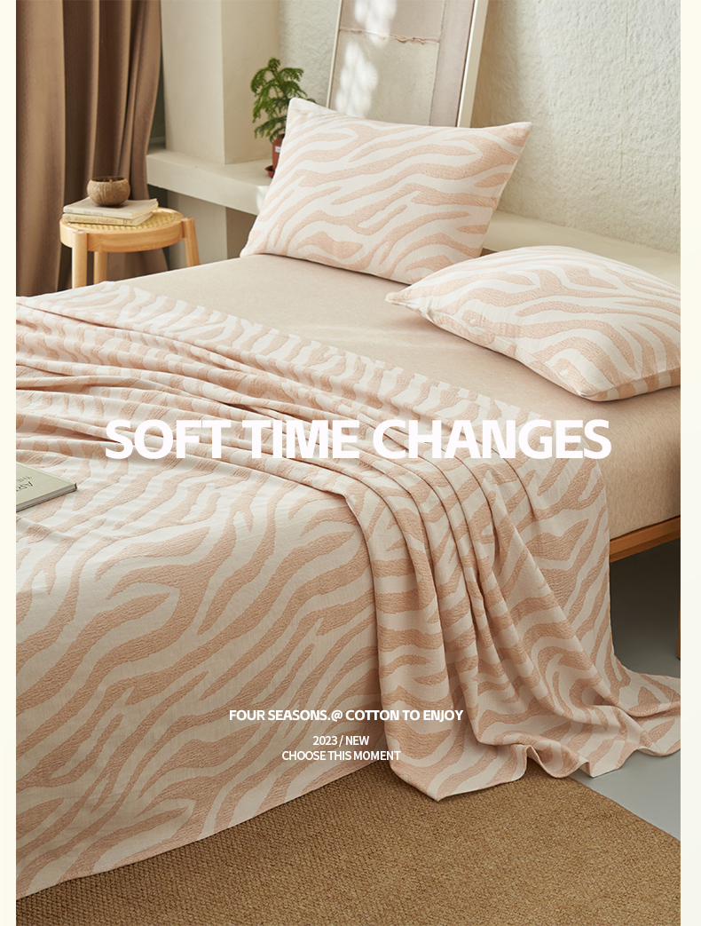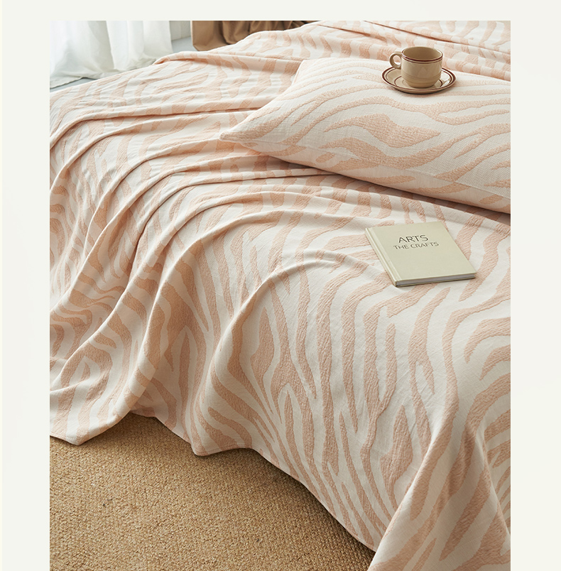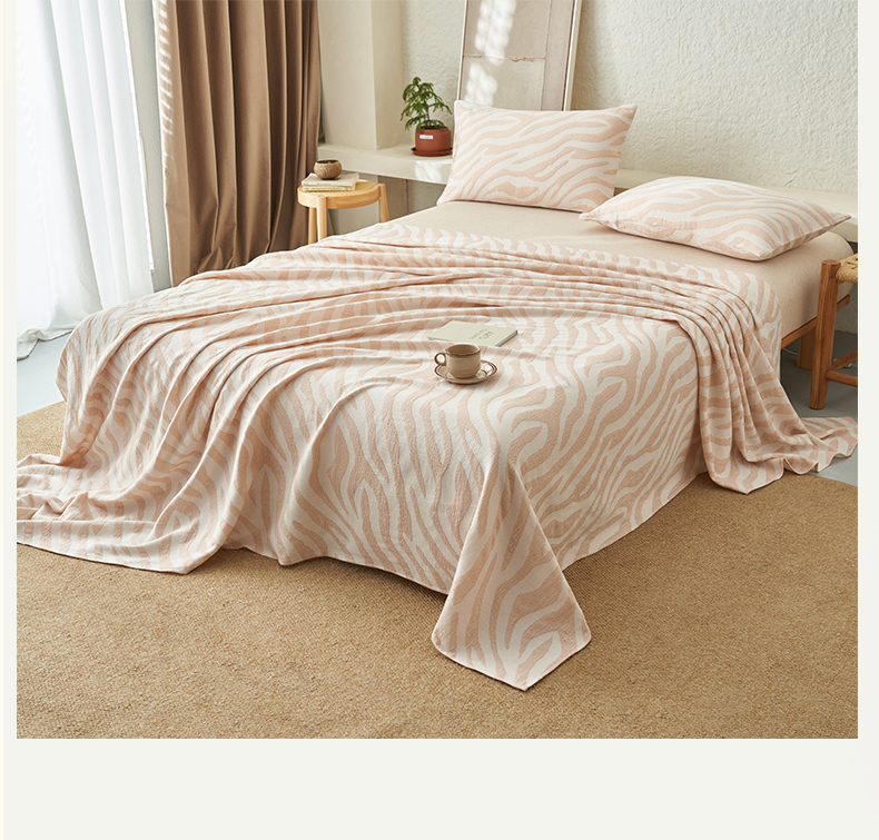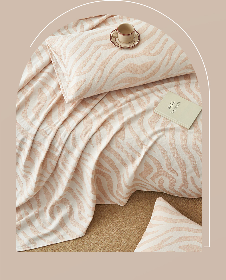 • 91家纺网 家纺一手货源 找家纺 早晨家纺 2025新款三层纱纯棉提花床单 斑马纹床单-咖色