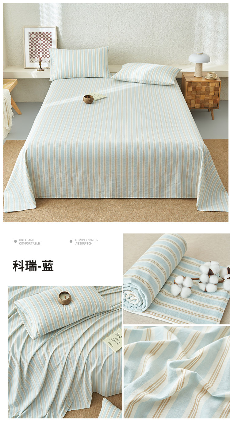 早晨家纺 2025新款色织纯棉水洗棉床单 科瑞-蓝