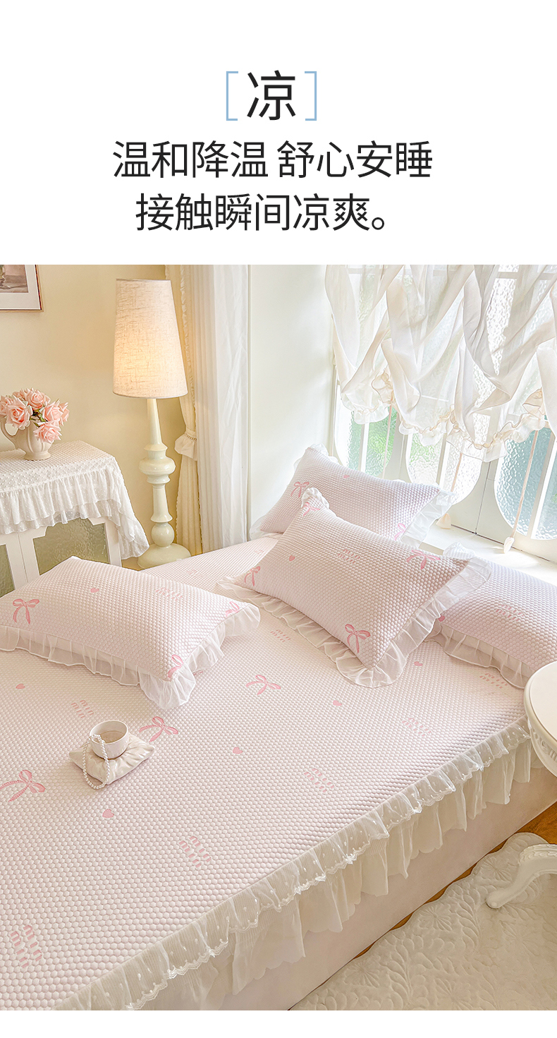 商品名称:麒豆豆 2025新款床笠式床裙凉感豆豆凉席席子-小清新系列 甜心蝴蝶-粉