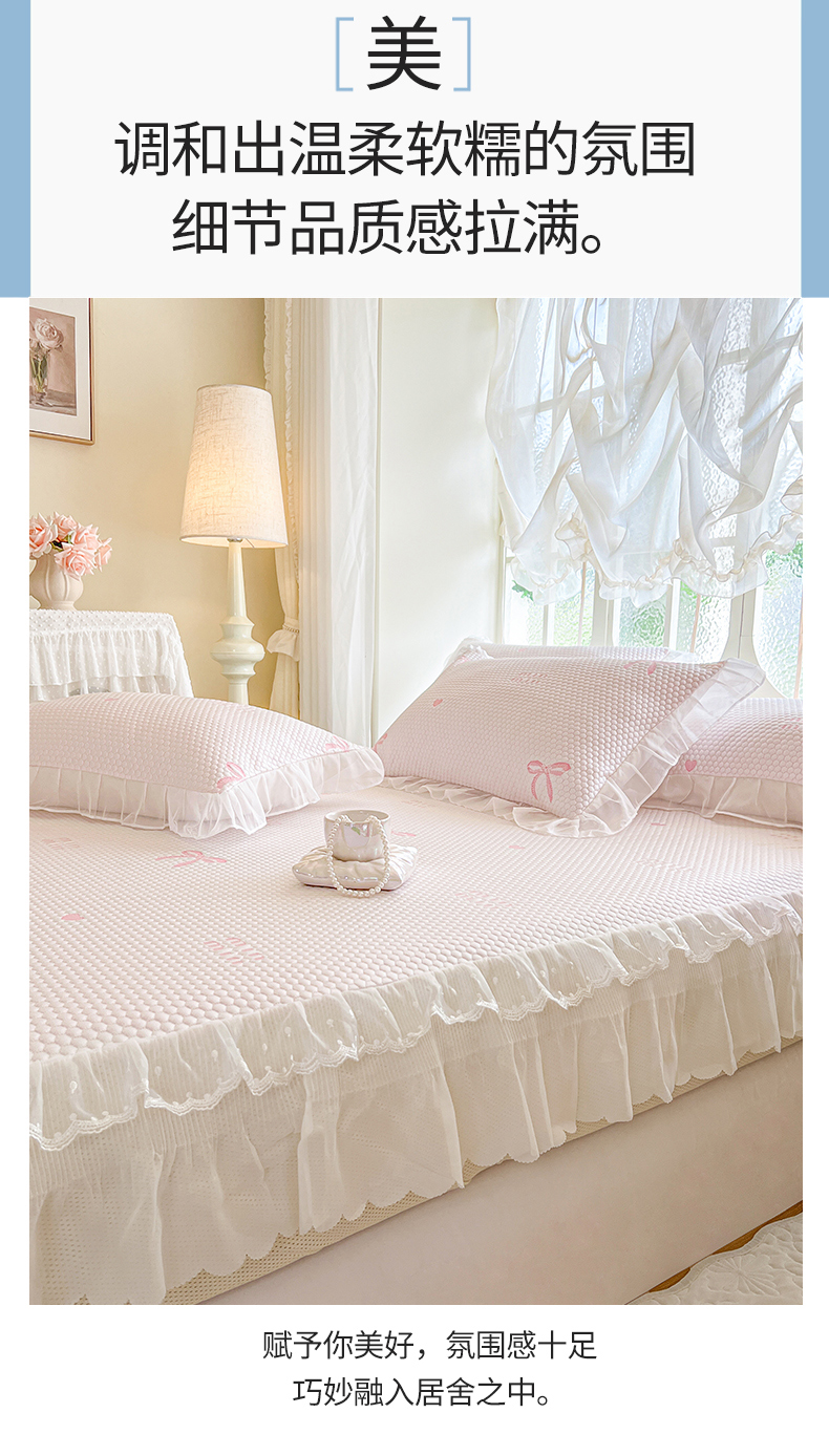 (总)麒豆豆 2025新款优舒棉花边床笠-蜜糖熊,白,粉,黄,灰,绿