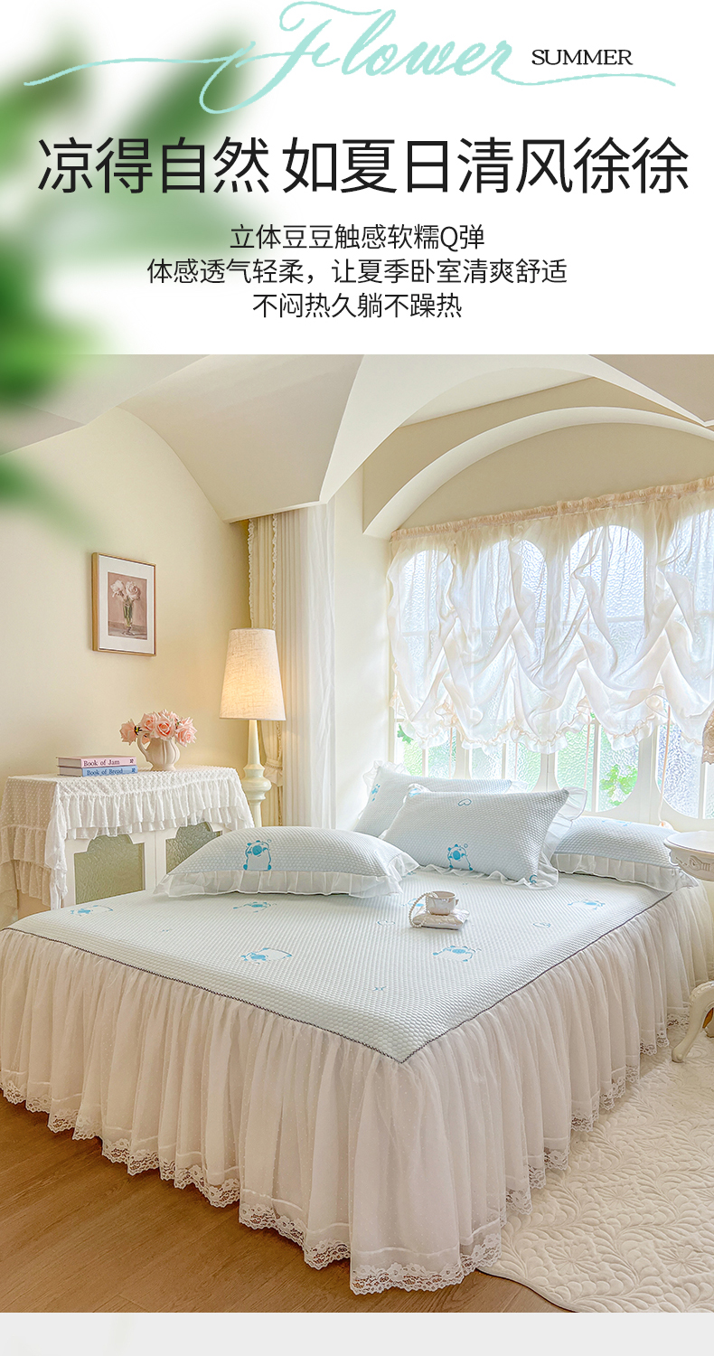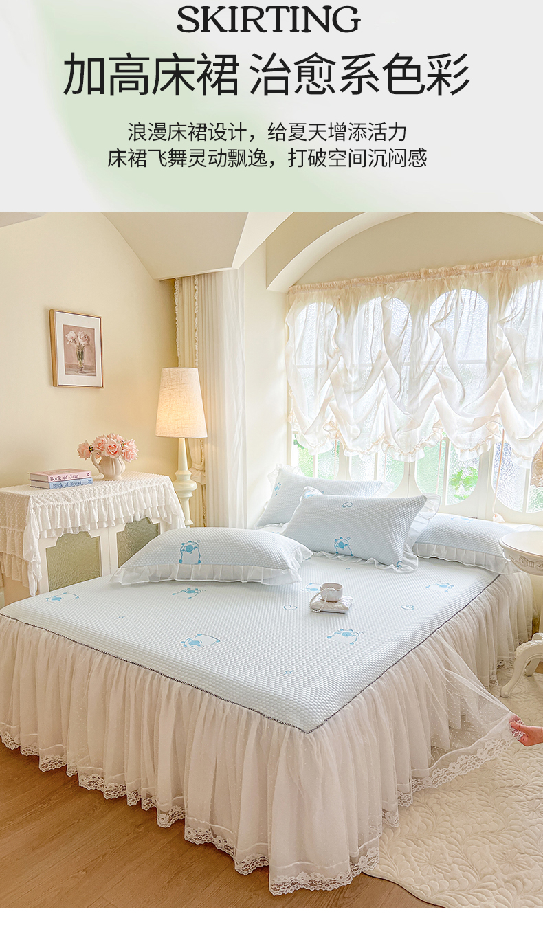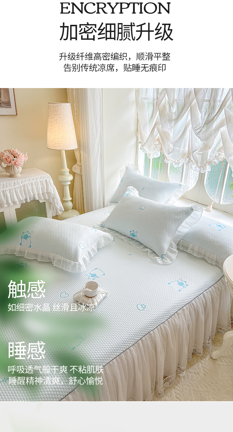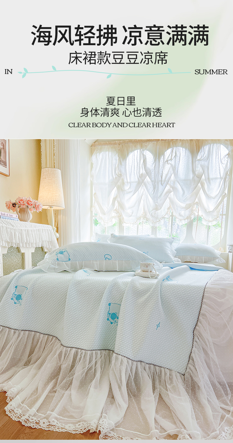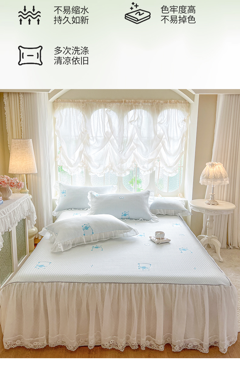 网红馆(ck家纺) 2025新款床裙款豆豆凉感席凉席席子-可爱巴拉 可爱巴拉-蓝