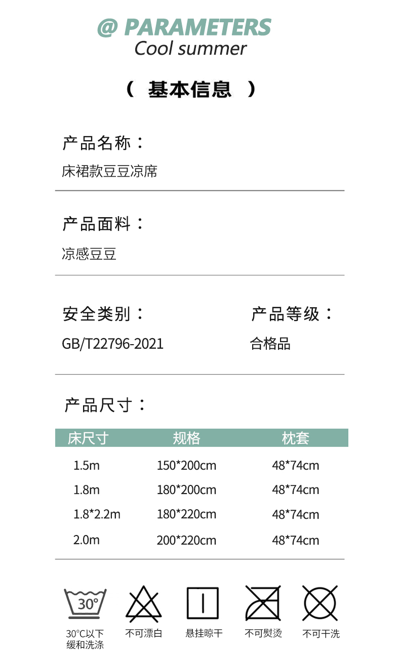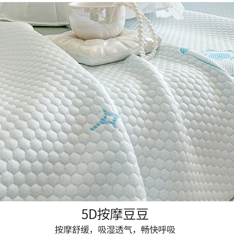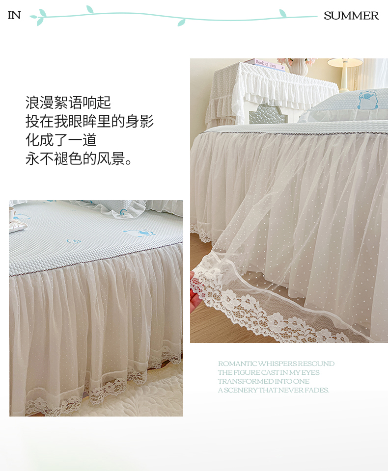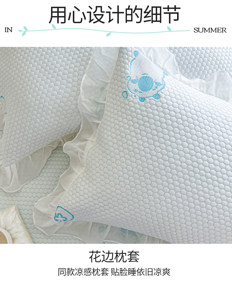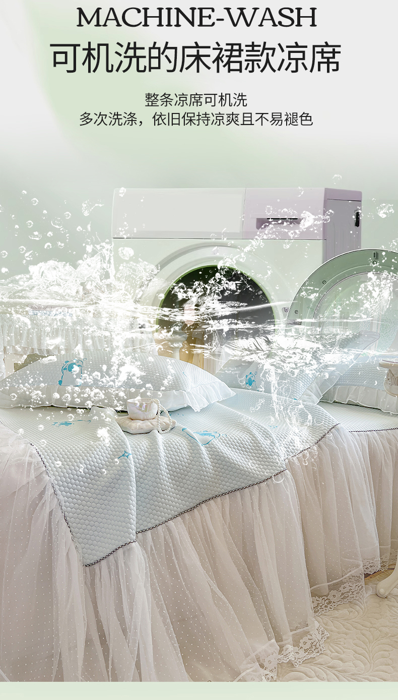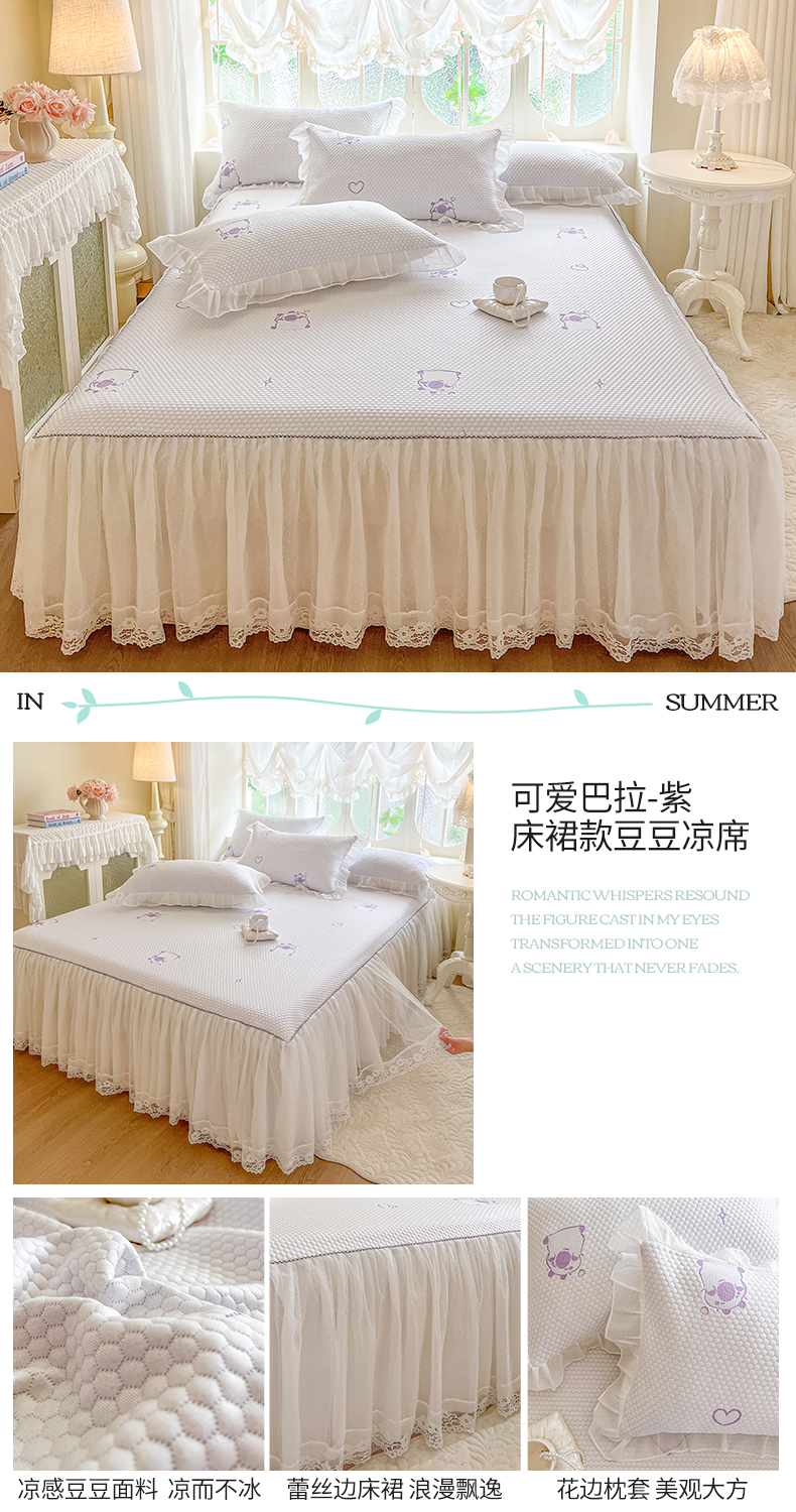 网红馆(ck家纺) 2025新款床裙款豆豆凉感席凉席席子-可爱巴拉 可爱巴拉-蓝