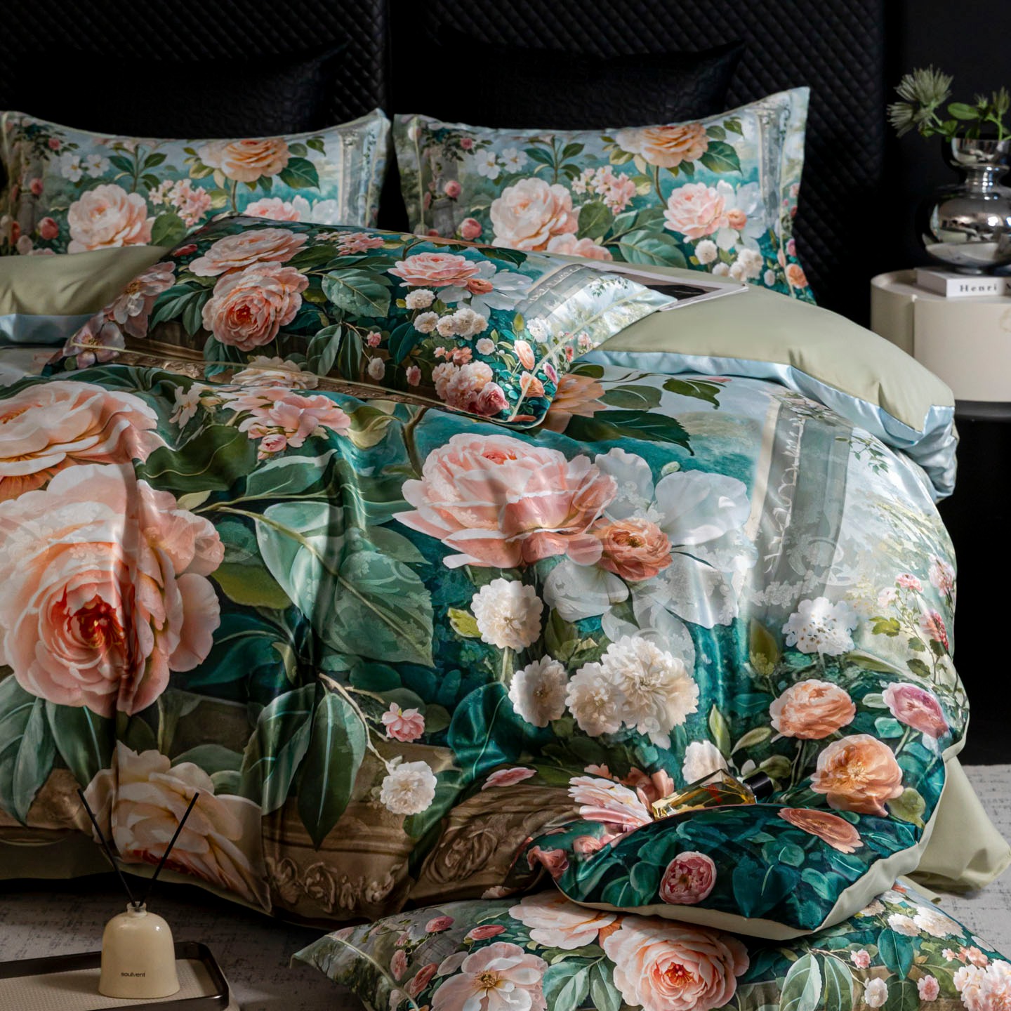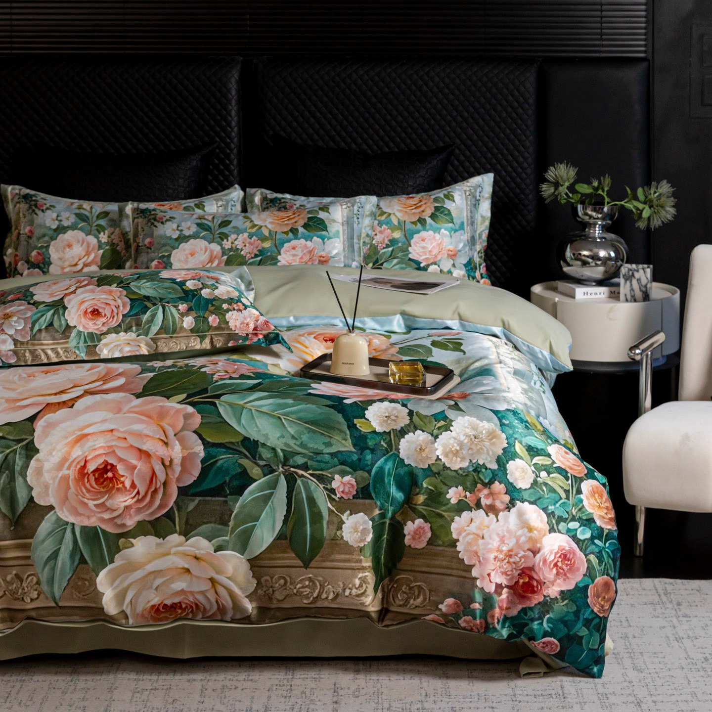 (总)莱欧纳家纺 2025新款质感多色提花四件套,克罗花雨,忆嘉南