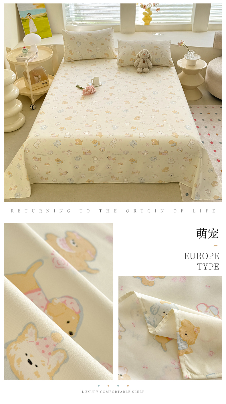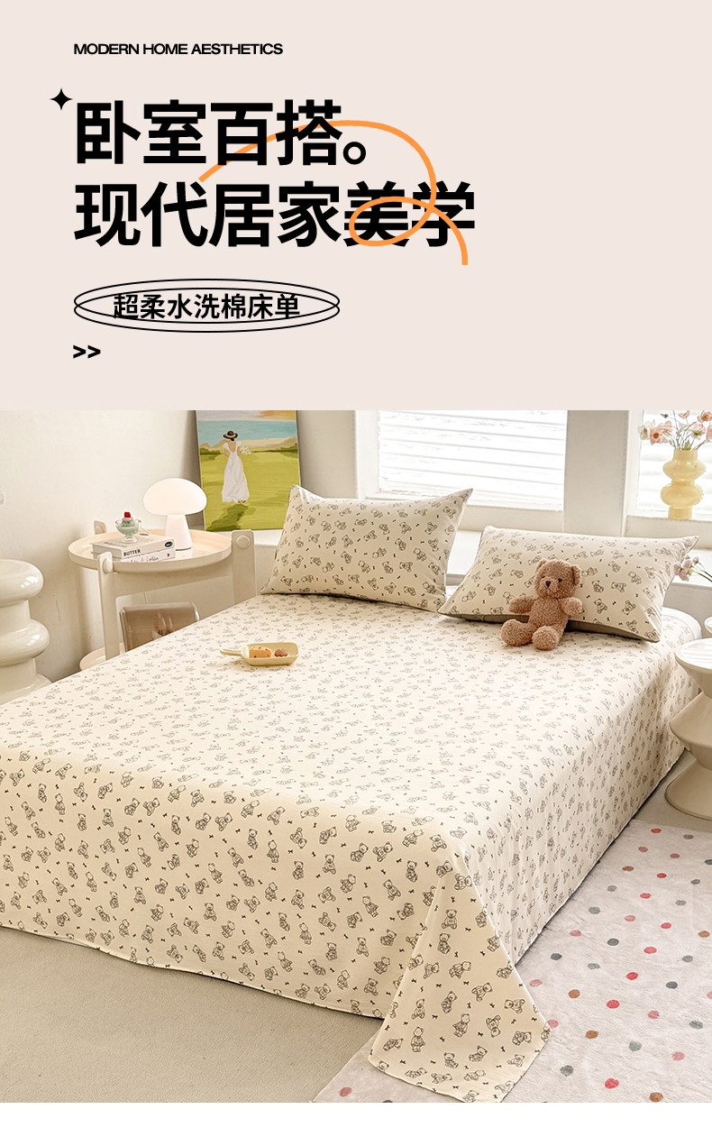 • 91家纺网 家纺一手货源 找家纺 多品家纺 2025春夏新款超柔水洗棉单床单 床单单件 满满熊