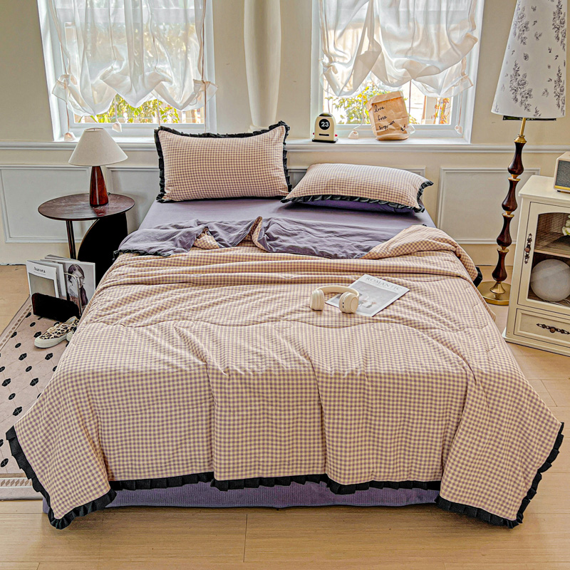 仟网汇 2025新款皱皱纱赫本风花边夏被夏凉被空调被四件套 赫本风-塞纳河畔