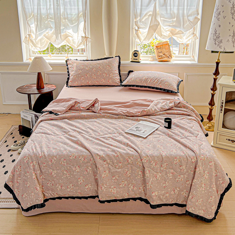 商品名称:仟网汇 2025新款皱皱纱赫本风花边夏被夏凉被空调被四件套 赫本风-塞纳河畔