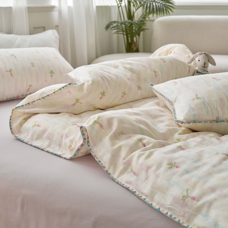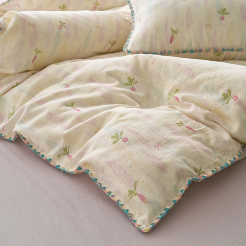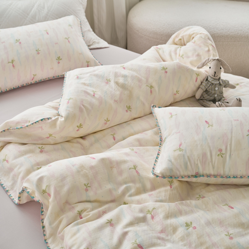 (总)洋铭区 2023新款全棉皱皱双层纱夏被,粉色郁金香,甜萝卜,旺旺熊,微笑,香甜草莓,小花仙,小鸭鸭