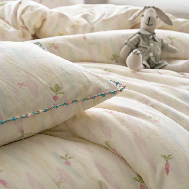 商品名称:洋铭区(原狠狠爱) 2025新款全棉彩边双层四件套 甜甜萝卜