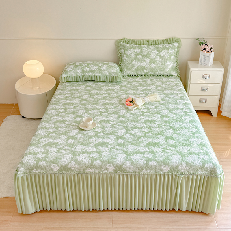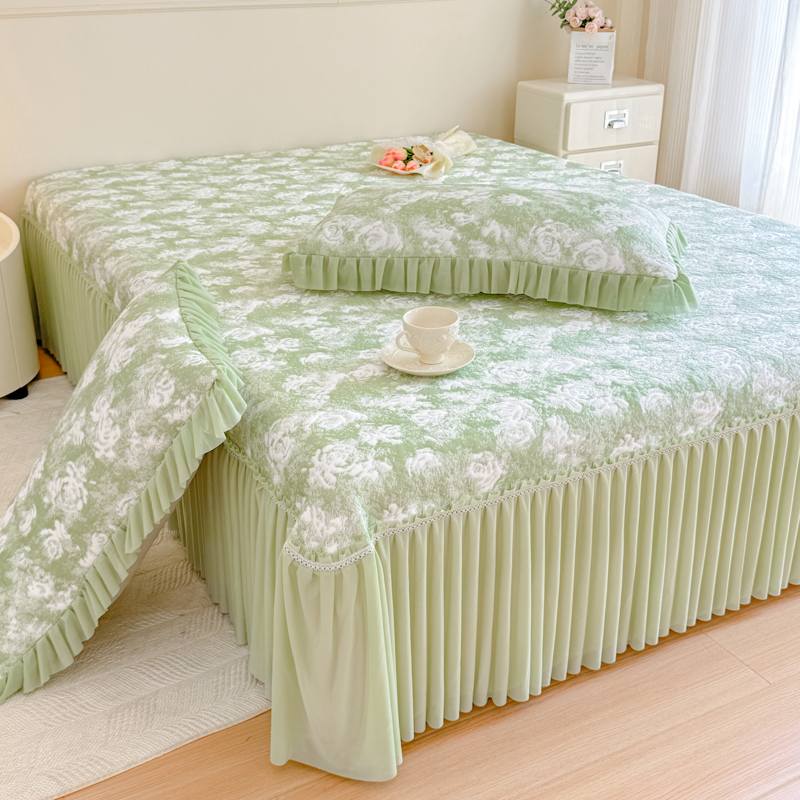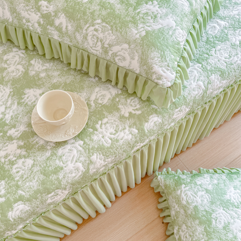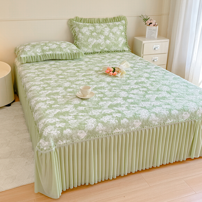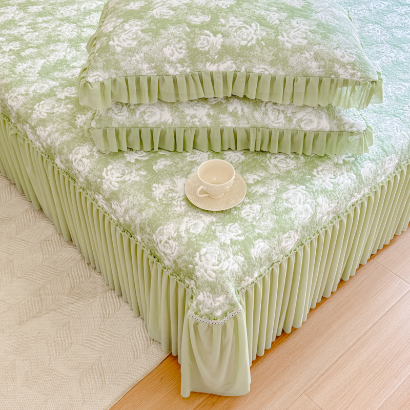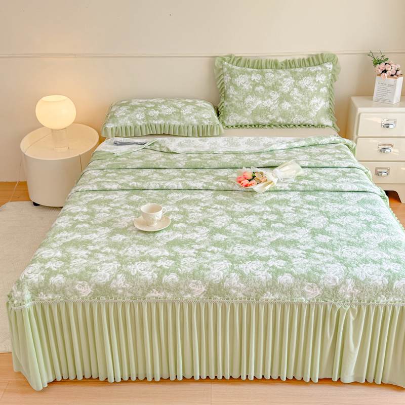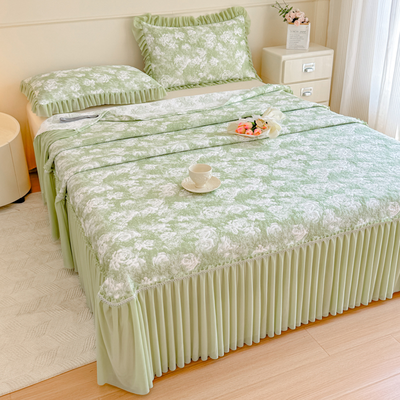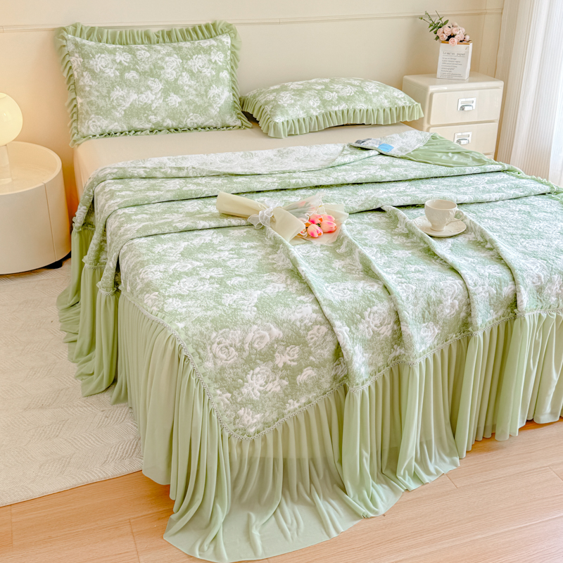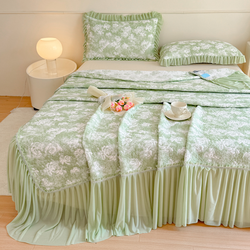 商品名称:慧菲 2025新款床盖款凉席三件套-玫瑰 玫瑰-绿