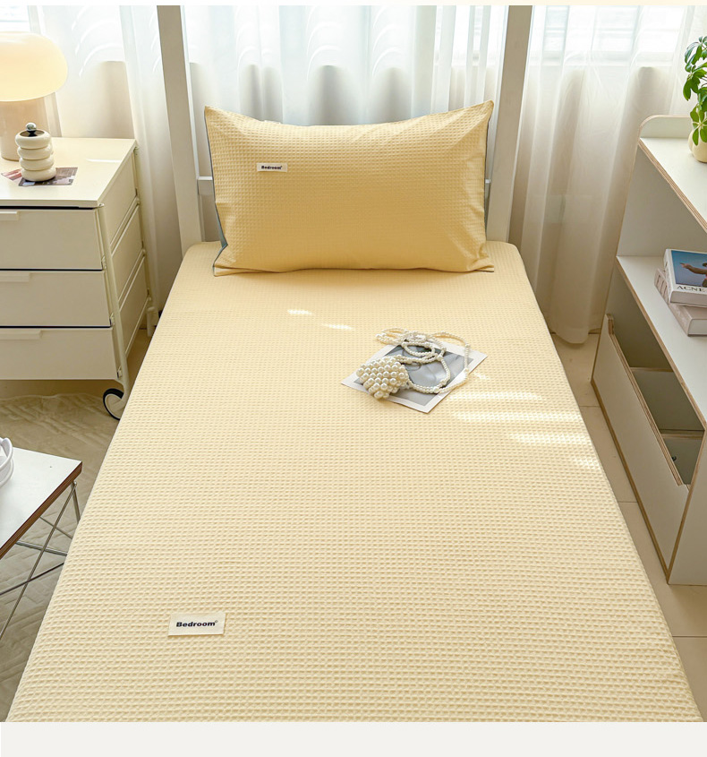 • 91家纺网 家纺一手货源 找家纺 眠博士 2025新款全棉纯棉华夫格学生床床垫套床垫套单件单床垫套 华夫格床垫套 奶黄色