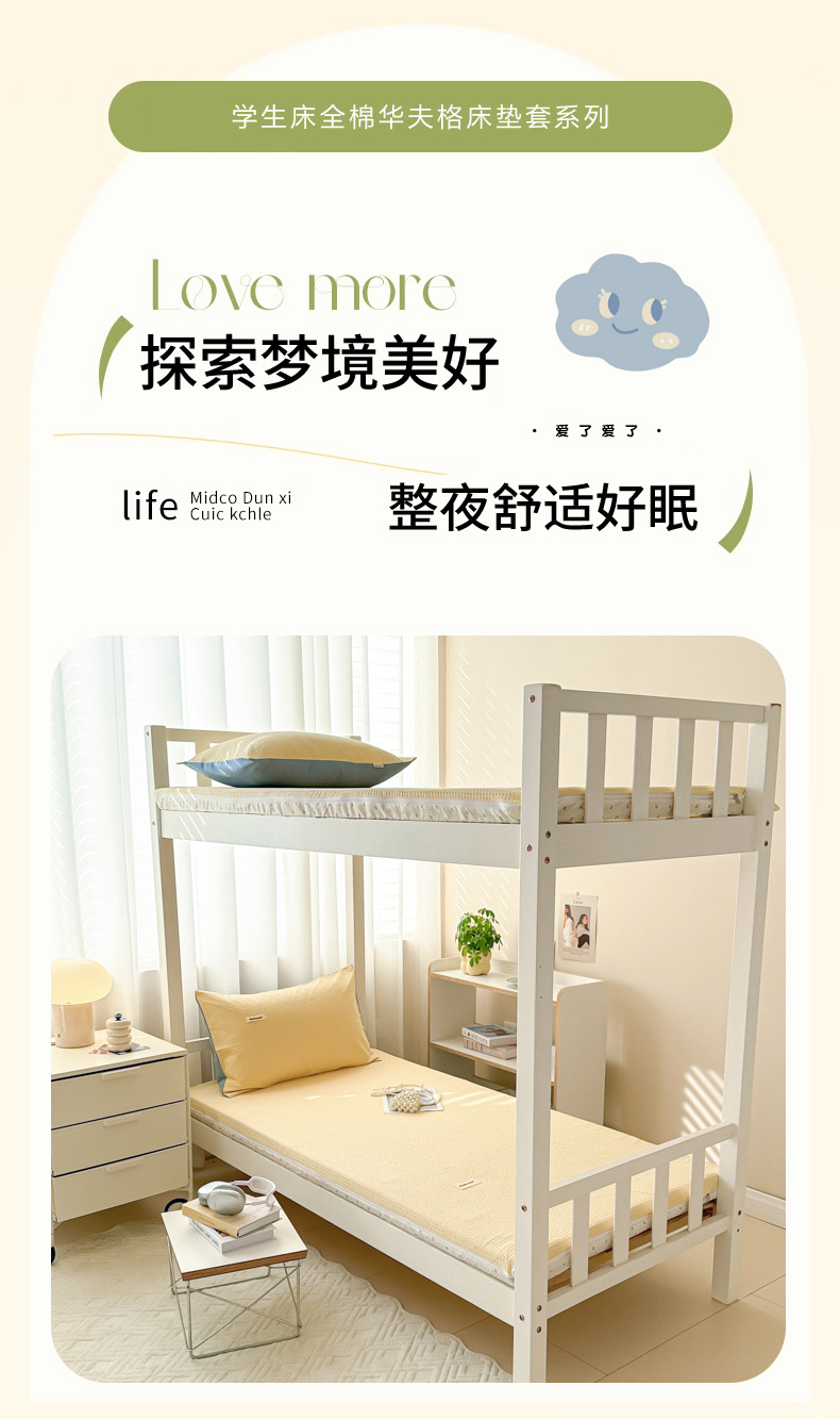 当前位置: 91家纺网 > 商品网购 > 床垫/床褥 > 眠博士 2025新款全棉纯棉华夫格学生床床垫套床垫套单件单床垫套 华夫格床垫套 奶黄色