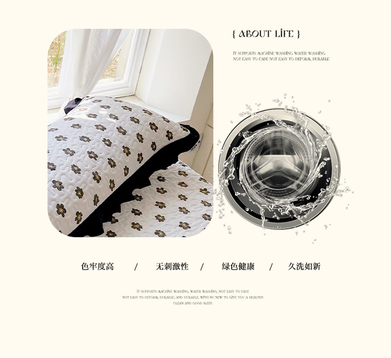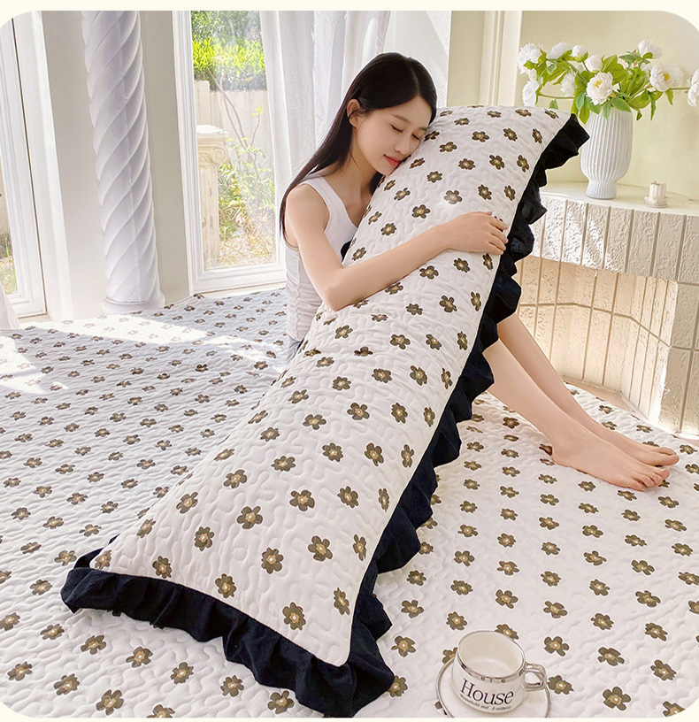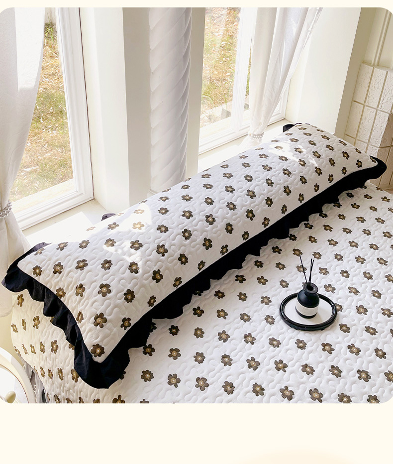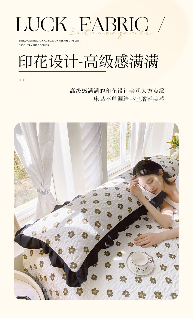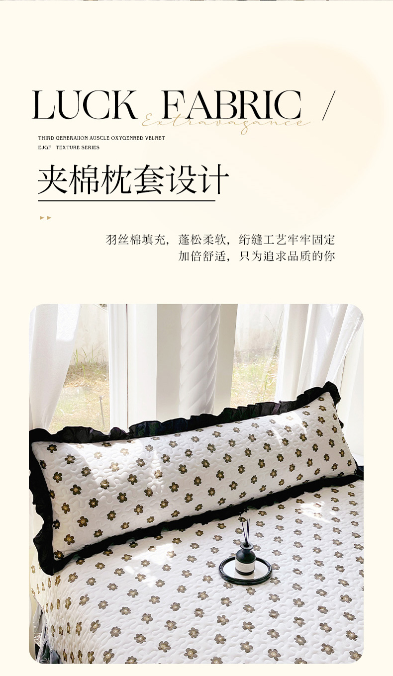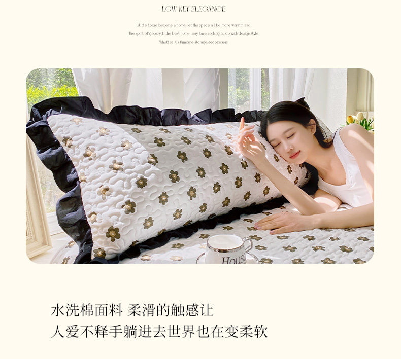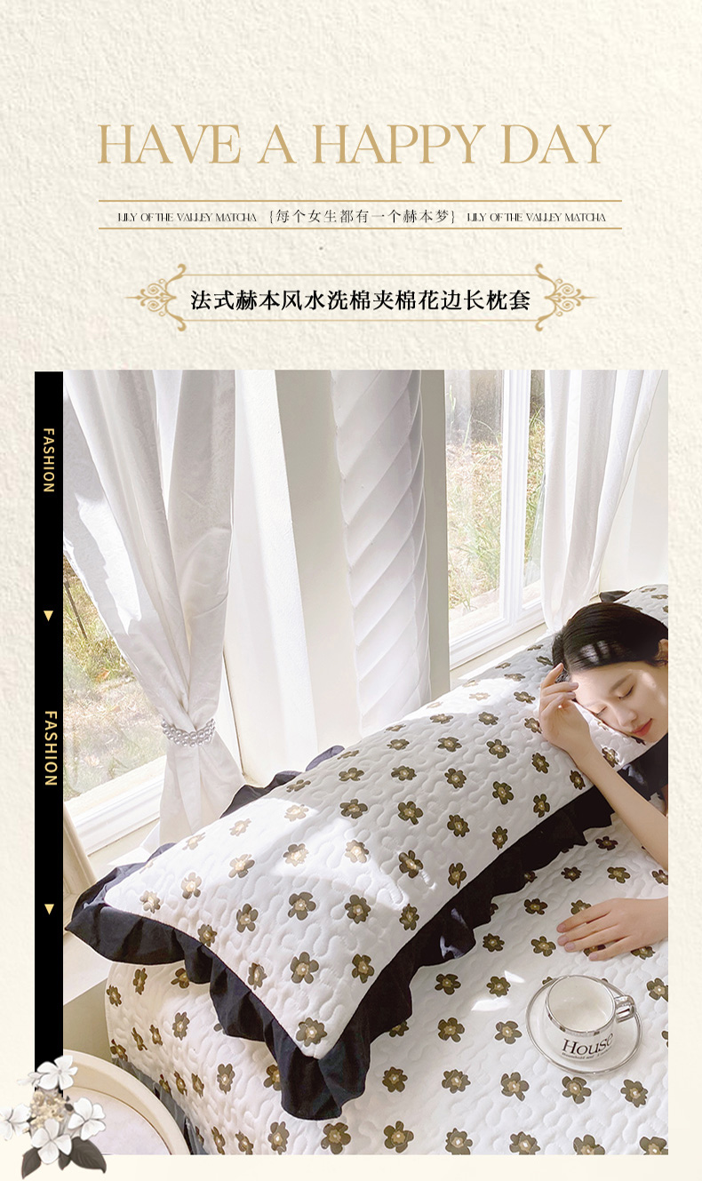 商品名称:雨彤家纺2025新款赫本风水洗棉花边夹棉枕套双人款 栗南微