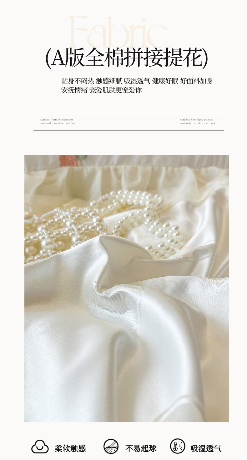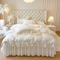 商品名称:瑞宝 2025新款法式花边全棉贡缎提花床裙款四件套-梦之语(控价265起) 梦之语-奶油白