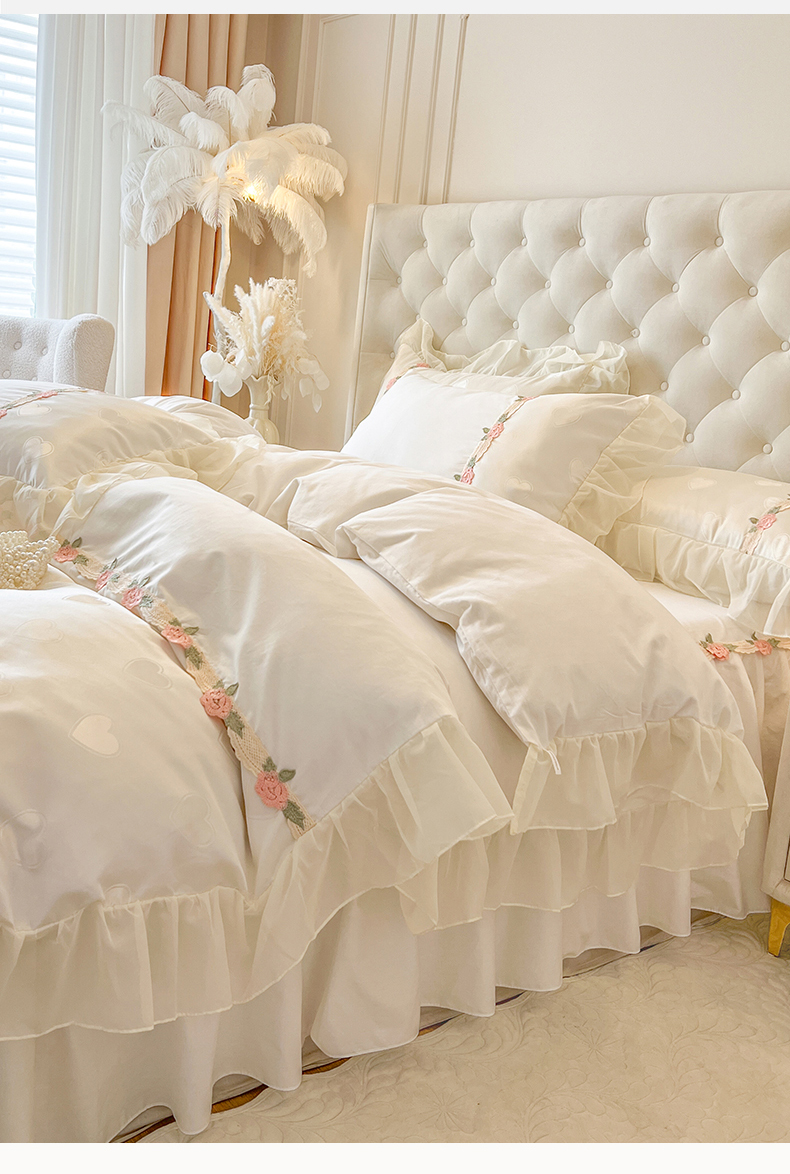 瑞宝 2025新款法式花边全棉贡缎提花床裙款四件套-梦之语(控价265起) 梦之语-奶油白