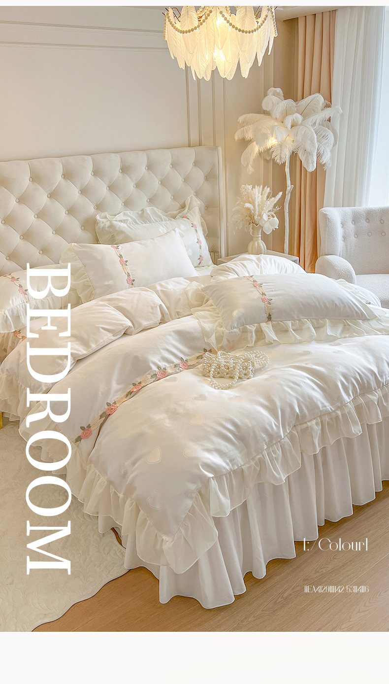 (总)瑞宝 2025新款全棉花边床裙三件套系列-落日甜茶,落日甜茶-梦幻玉,落日甜茶-奶油白,落日甜茶-青柠绿,落日甜茶-甜紫