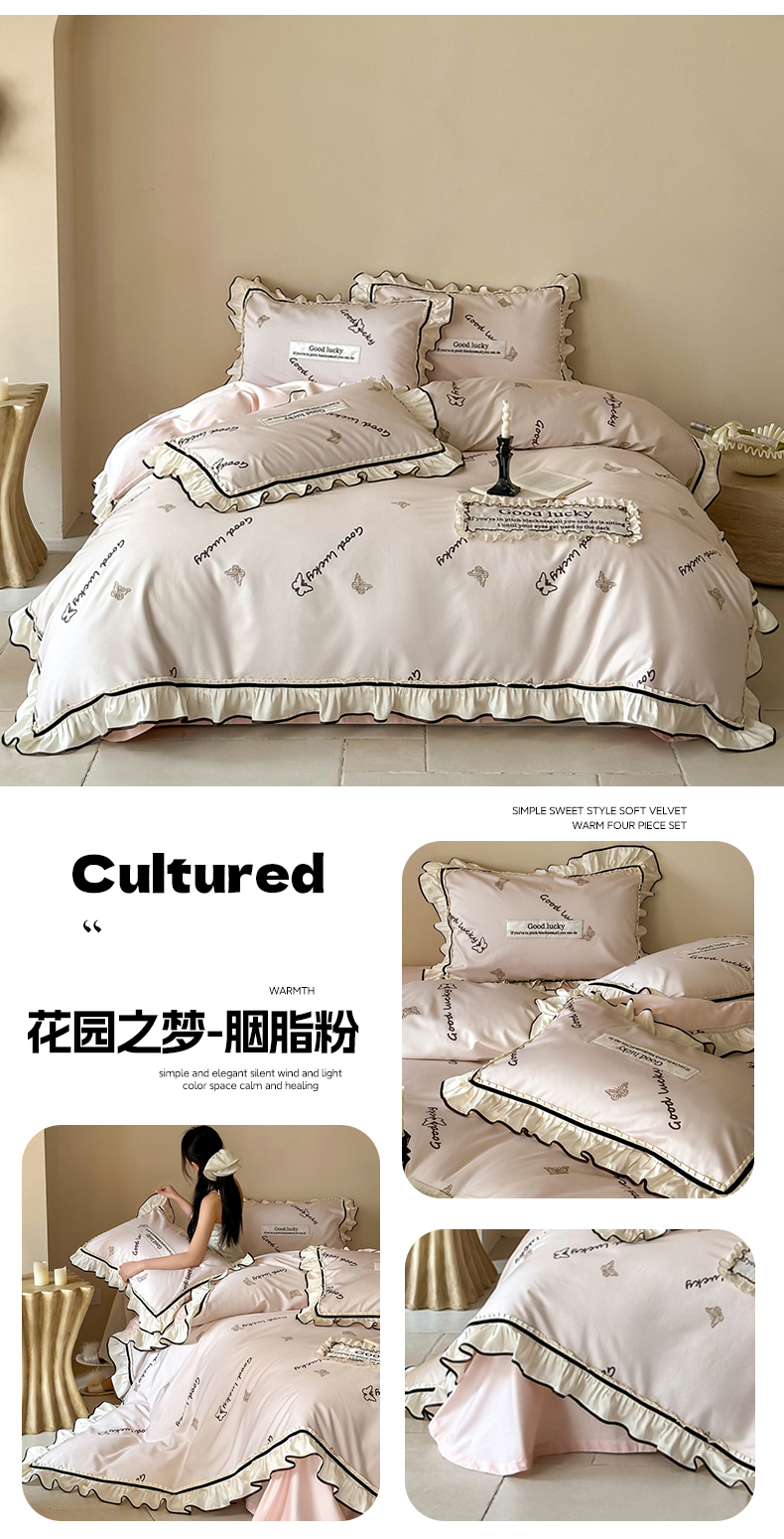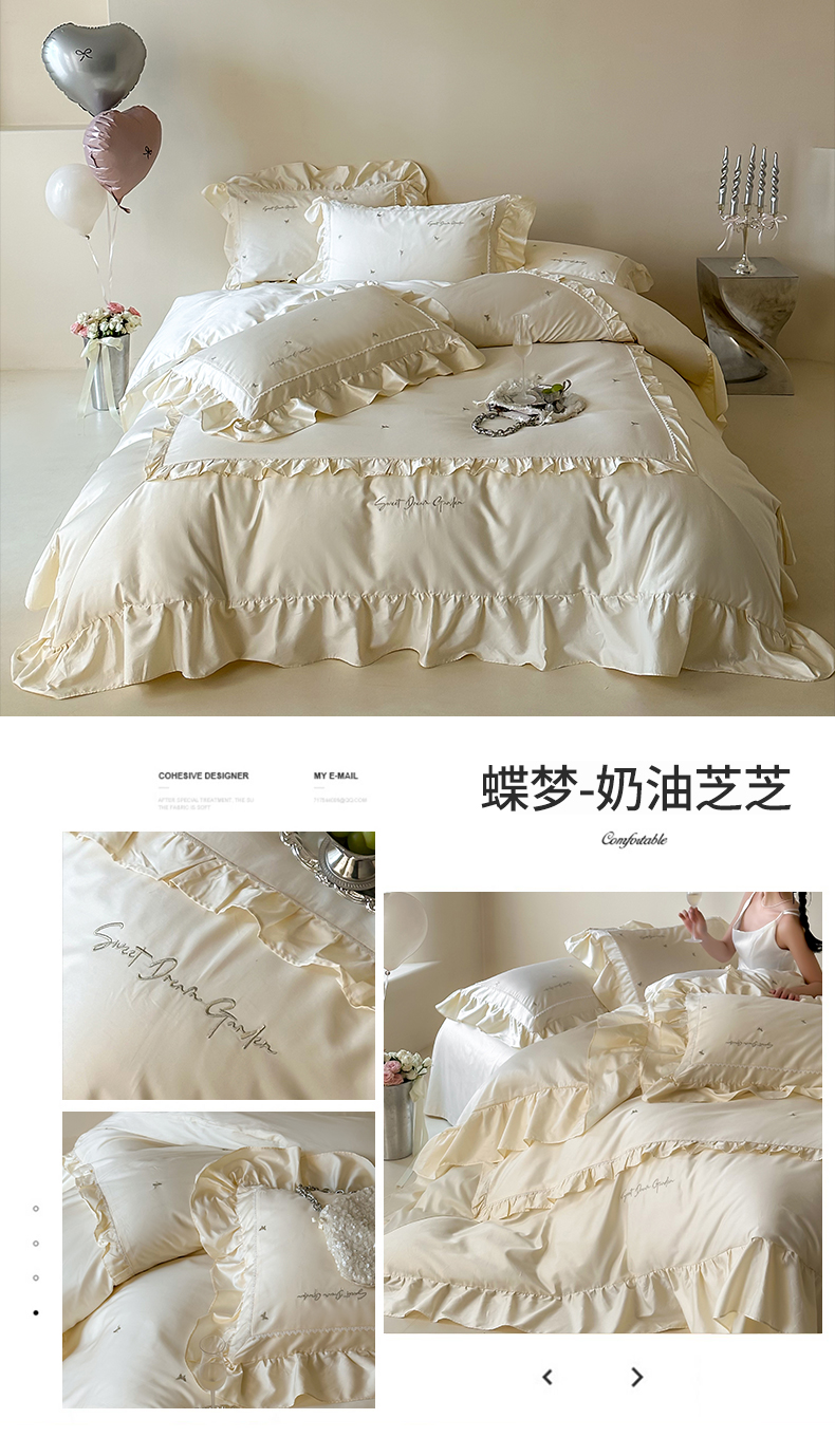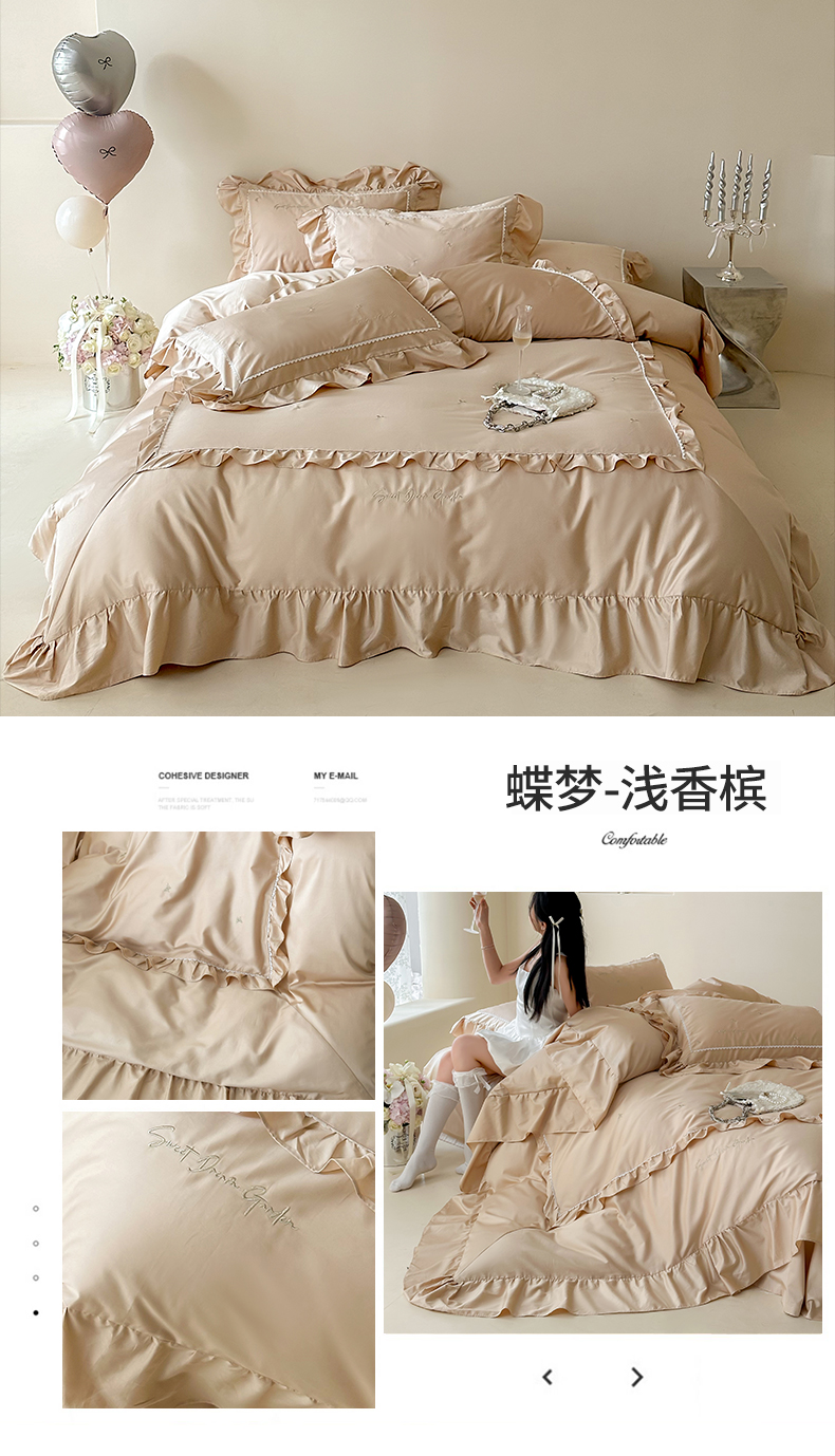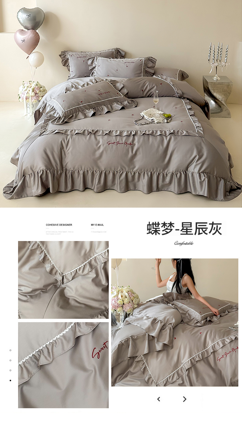 商品名称:(总)宏羽纺家纺 2025新款100s全棉纯棉贡缎法式刺绣花边四件套