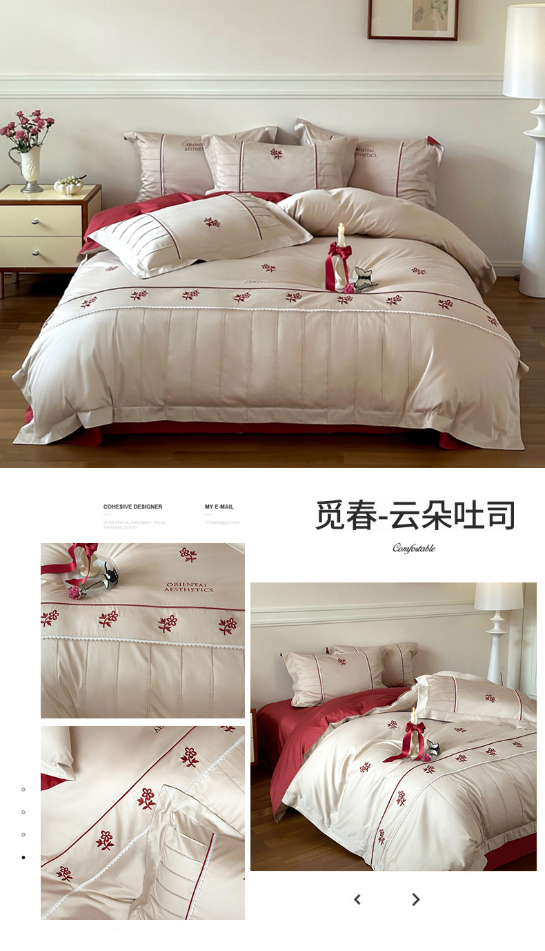 (总)宏羽纺家纺 2023新款高支高密全棉绣花工艺四件套--黛娜,黛娜-冰咖啡,黛娜-烈焰红,黛娜-凝脂玉,黛娜-月雾灰